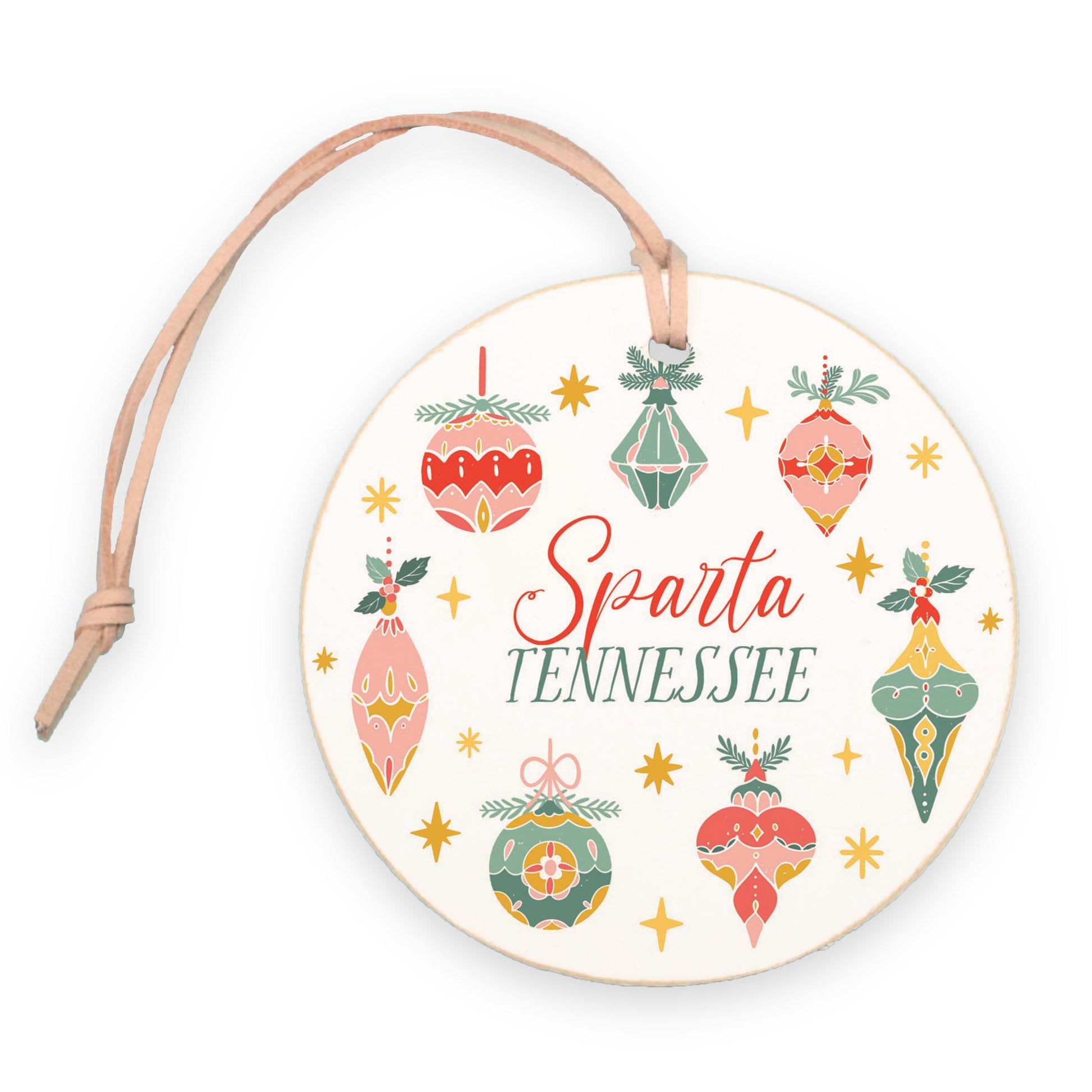 Our 4-inch round Ornaments are handmade in our warehouse in Laurel, Mississippi. These ornaments are made of natural wood and come in various designs. You will love these on any tree or use them to add charm to your space all year.