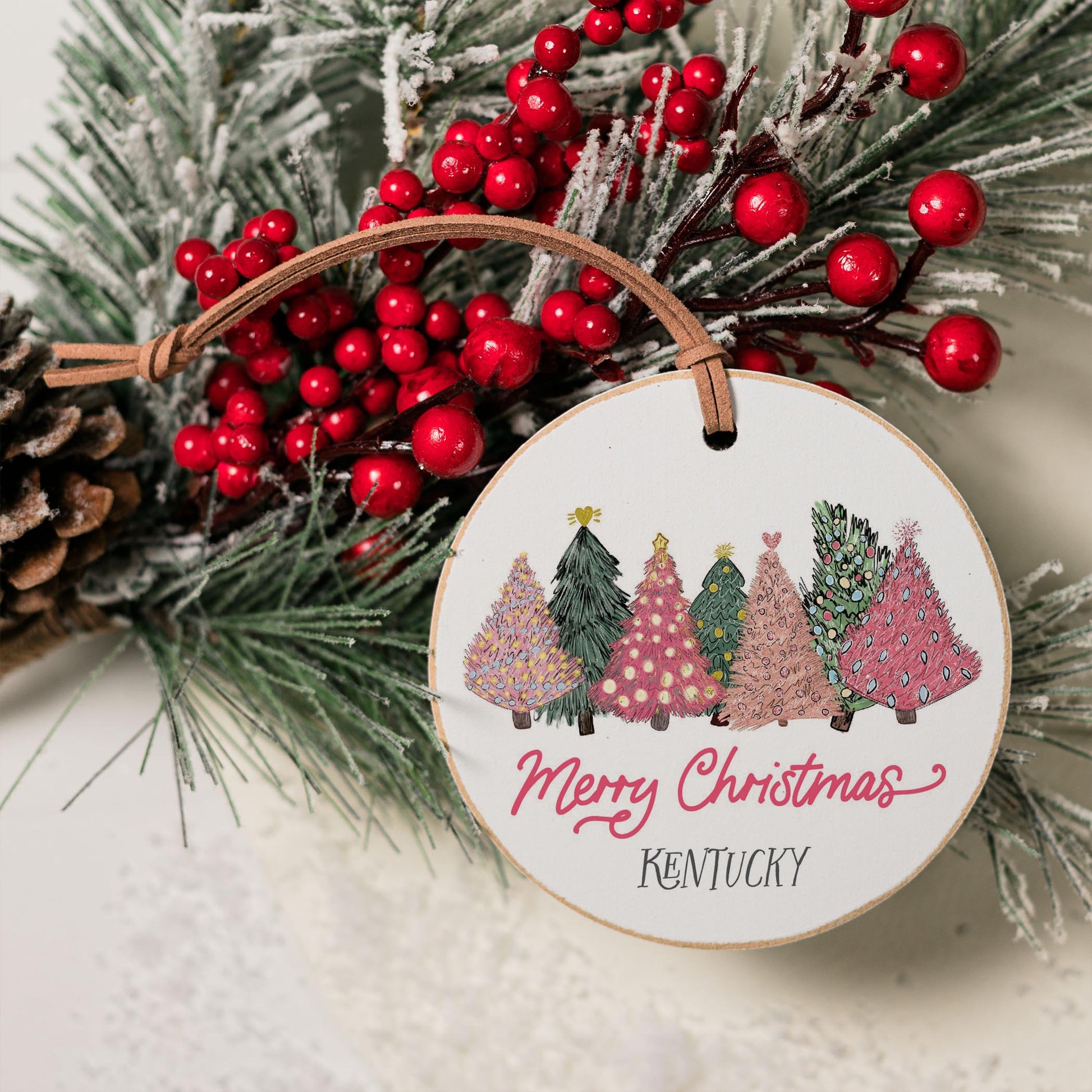 4" Round Ornament-Pink Trees Kentucky