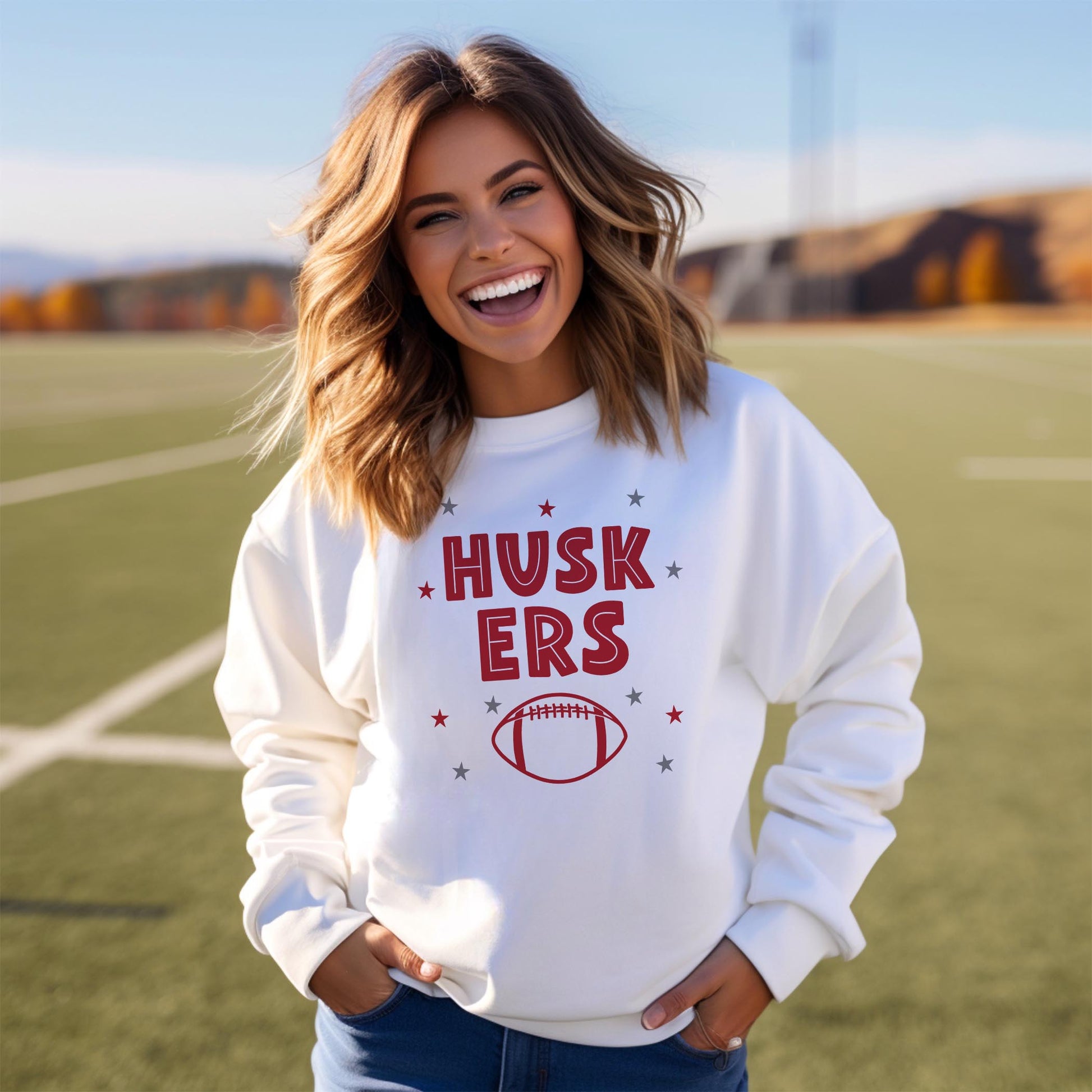 Gildan Sweatshirt White-Game Day Stars Nebraska Football Red & Grey