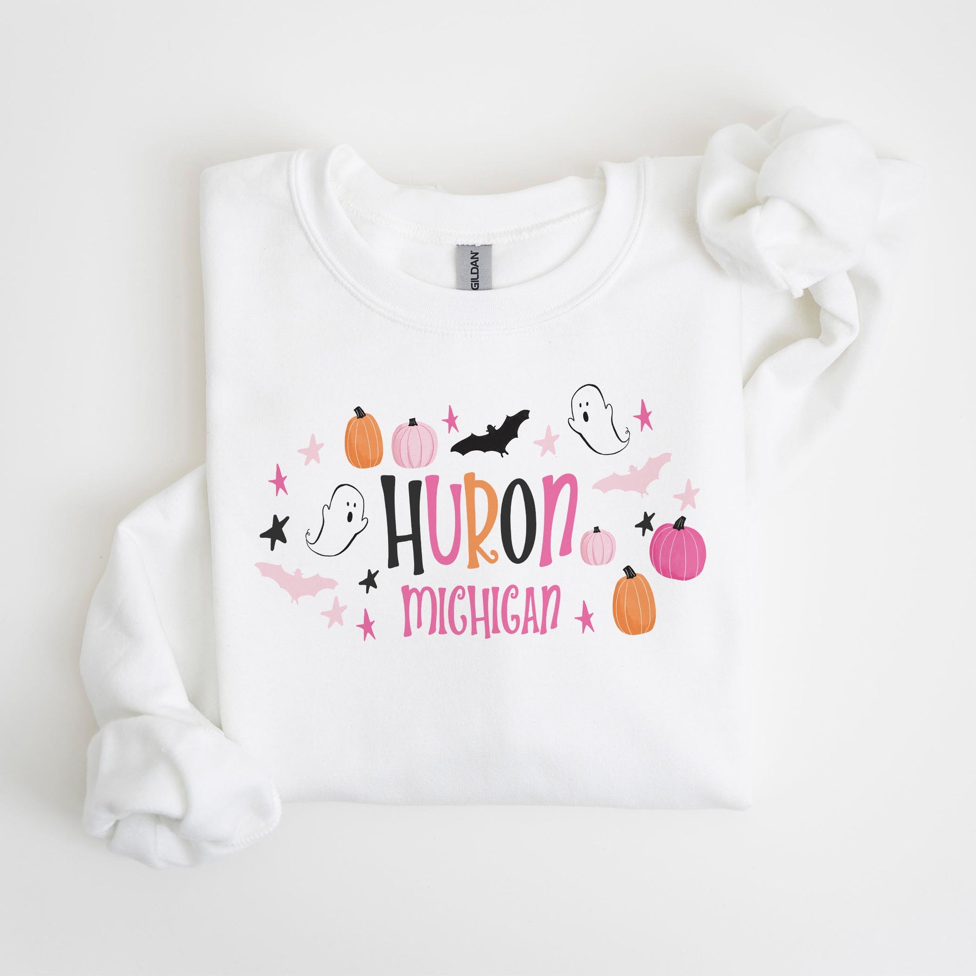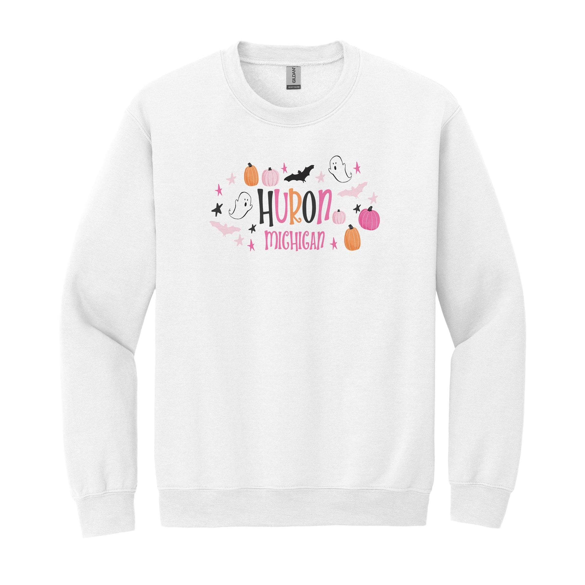 Gildan Sweatshirt White-Happy Ghost Huron Michigan
