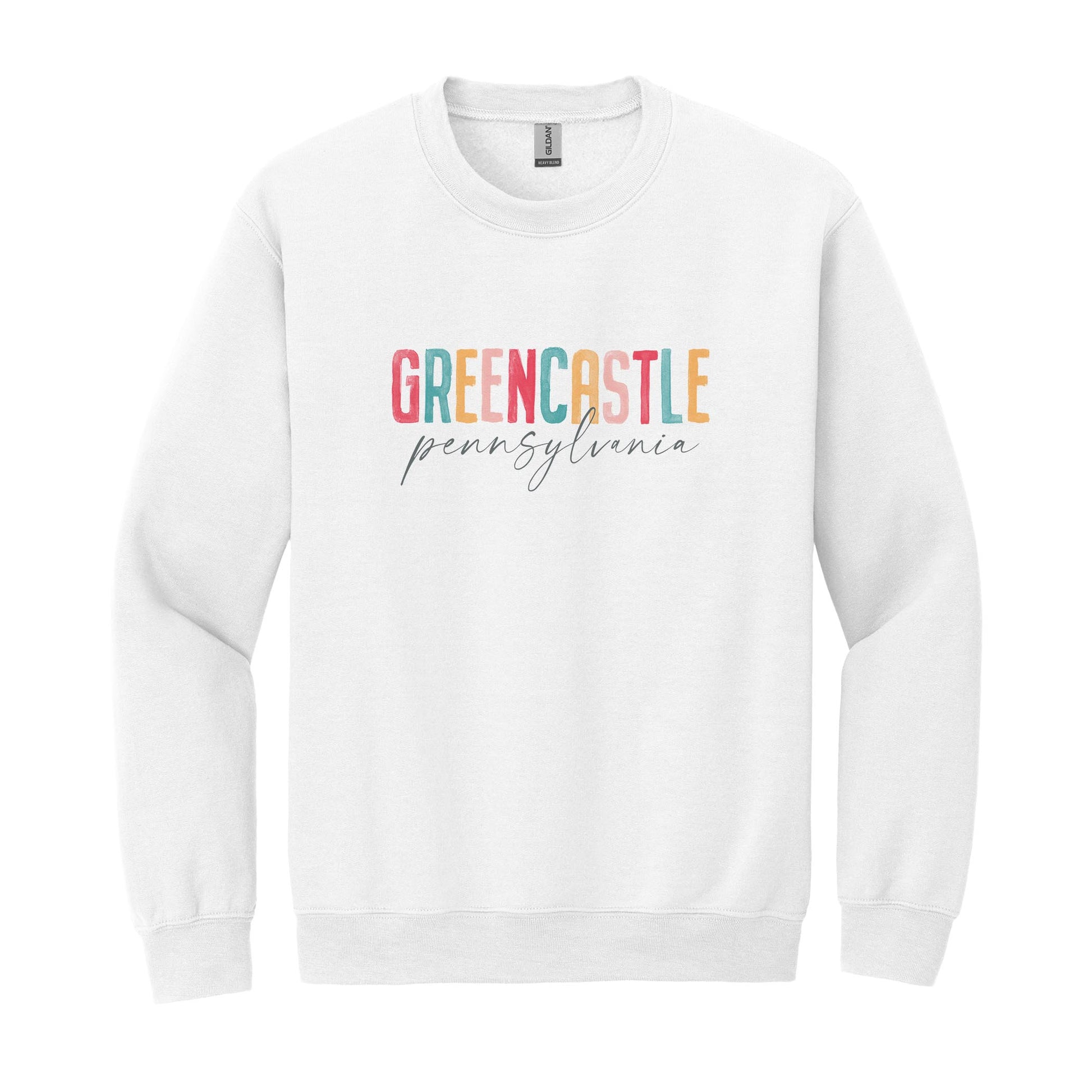 Gildan Sweatshirt White-Watercolor City Greencastle Pennsylvania