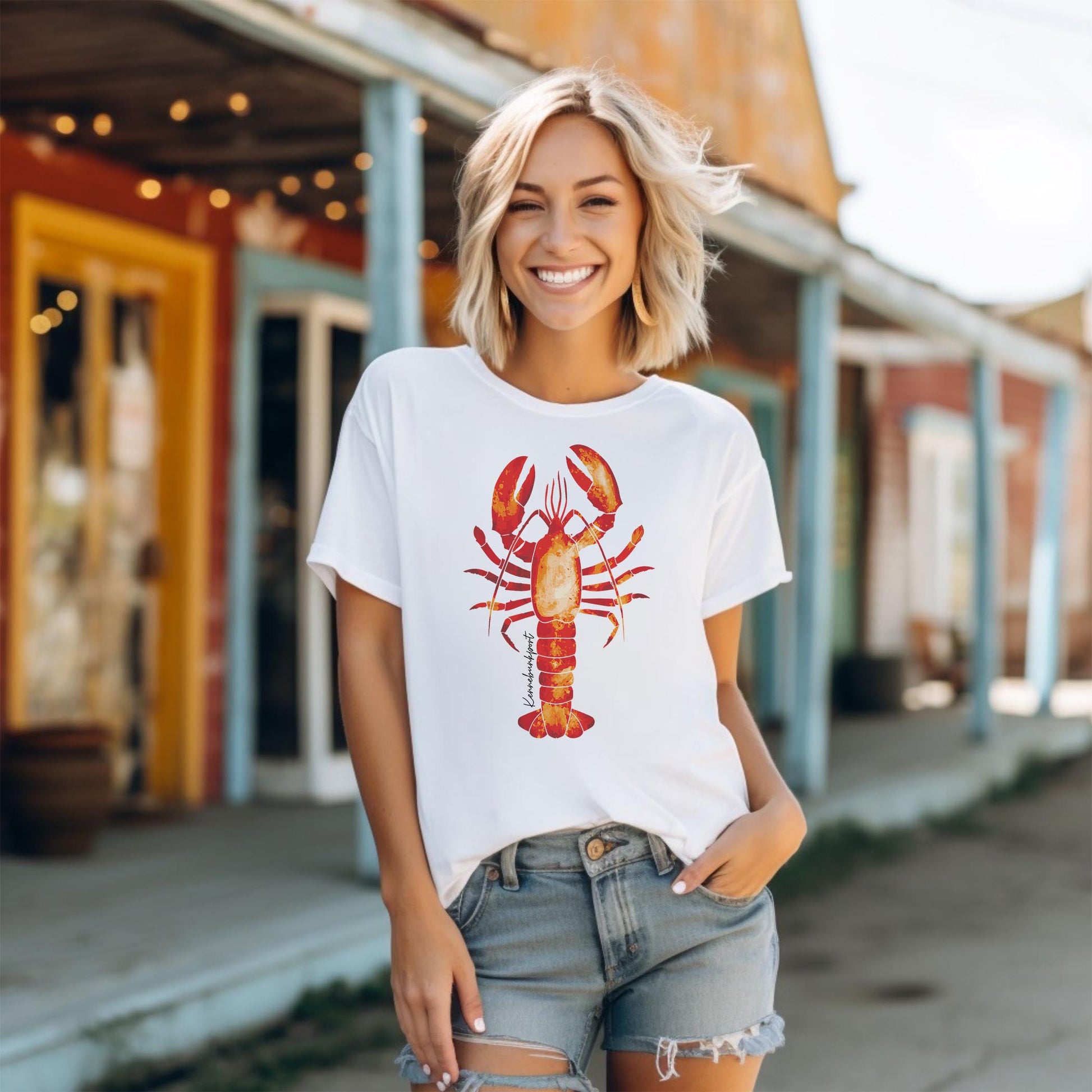Bella Canvas T-Shirt White-Kennebunkport Maine Orange Lobster