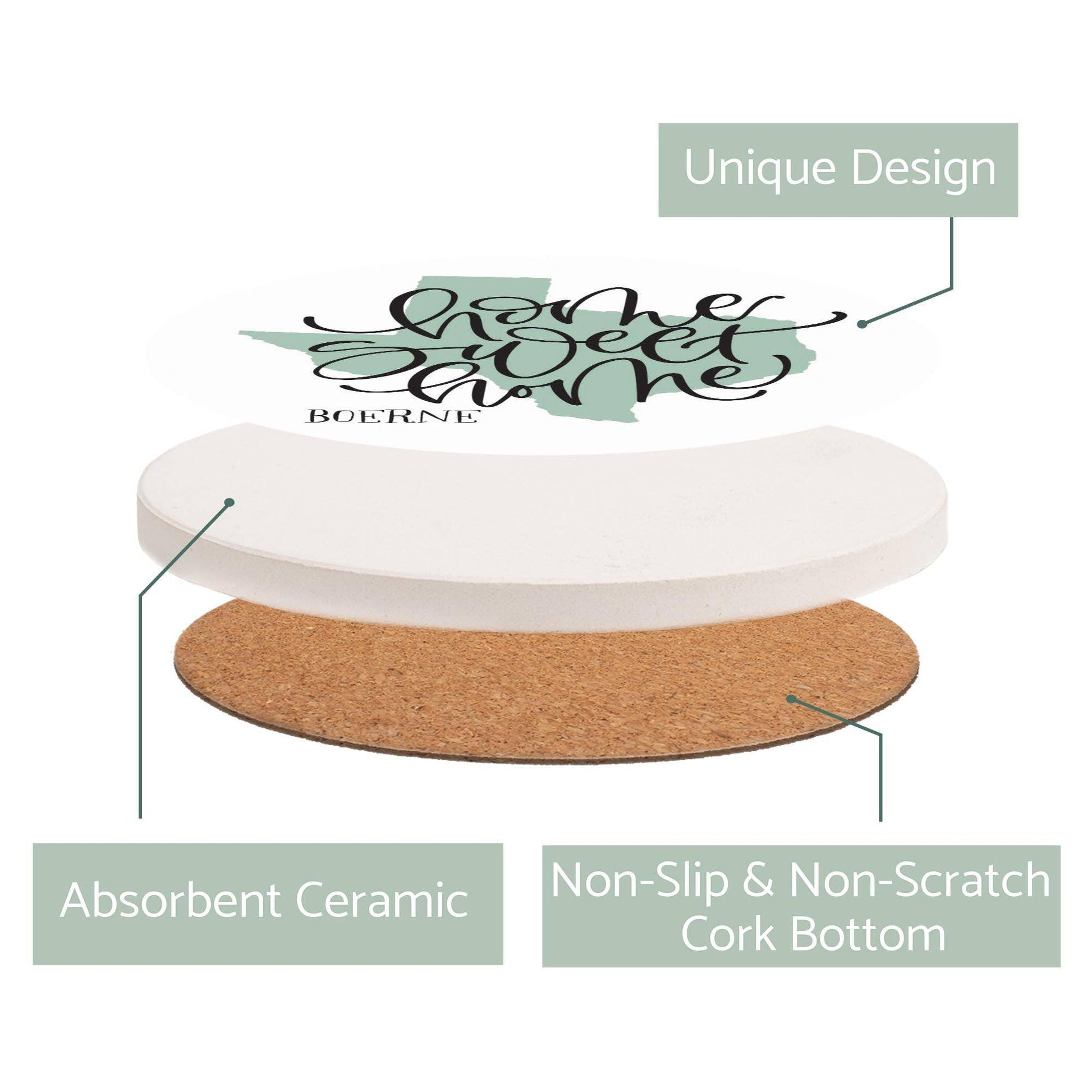 Capture the charm of Boerne, Texas, with our delightful Home Sweet Home Coaster. Each piece is designed to add a touch of local pride to your space, making it not just a practical item for everyday use but also a heartfelt expression of community spirit. Perfect for those who love to celebrate their roots, this coaster brings a warm nod to the places we hold dear.