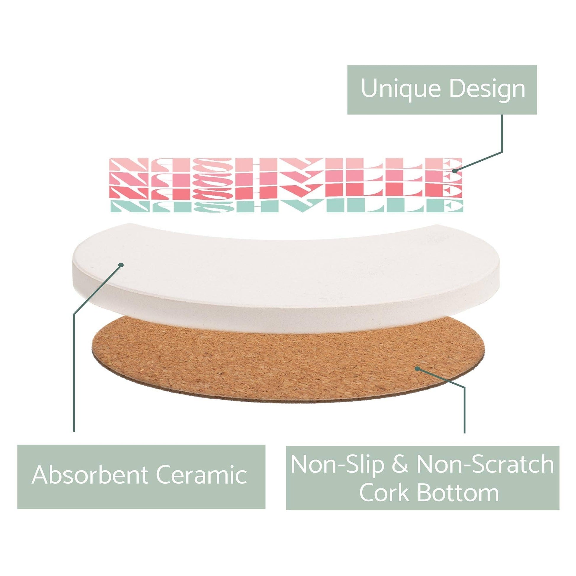 Crafted from durable ceramic, these coasters are designed to withstand everyday use while adding a vibrant touch to your kitchen or living room. Measuring approximately four inches across, they fit comfortably under your favorite mugs or glasses. Beyond their practicality, they serve as delightful personal touches that reflect your style, memories, or even a dash of humor. The playful color palette of soft pinks and greens beautifully complements a variety of design aesthetics, making them versatile additions to any décor scheme.