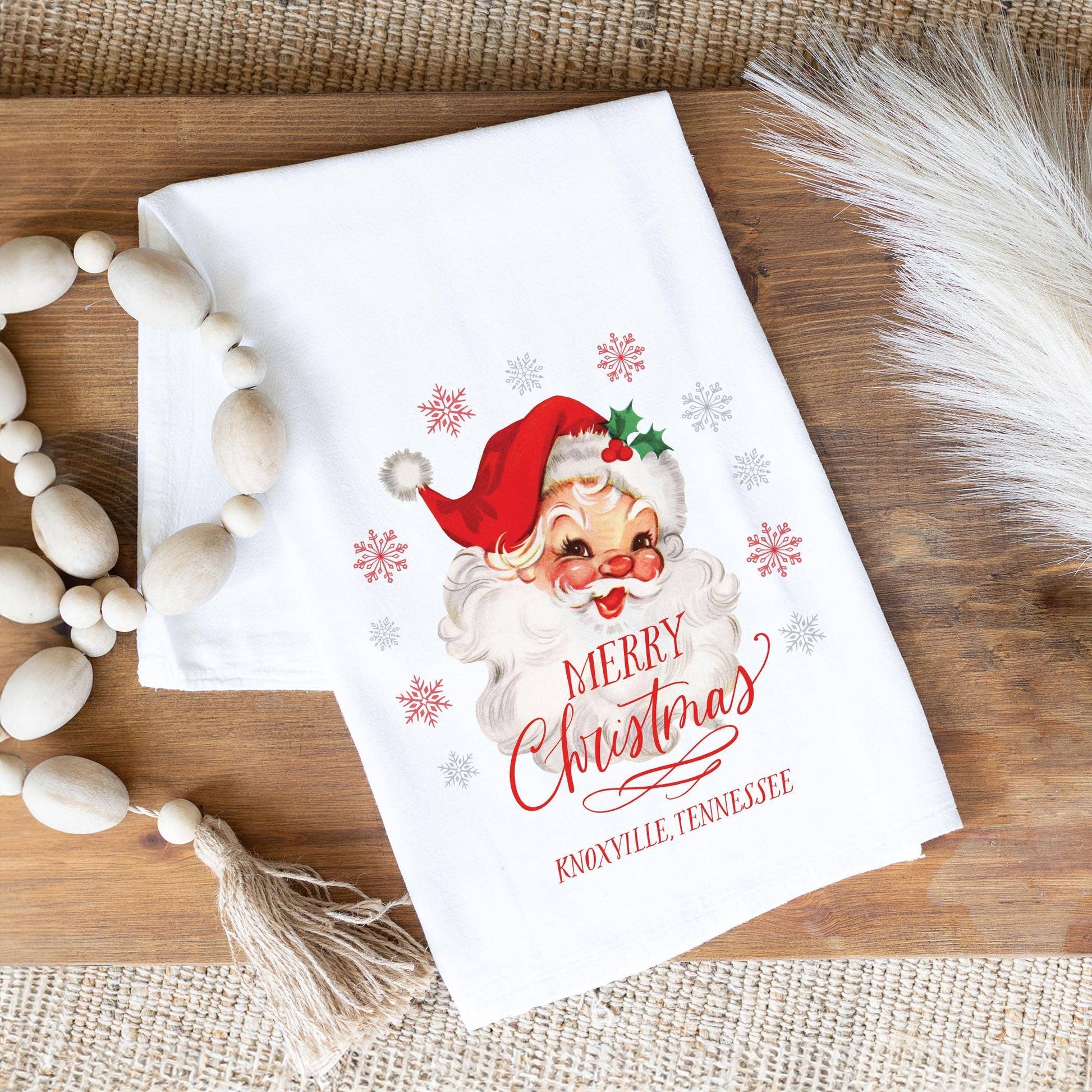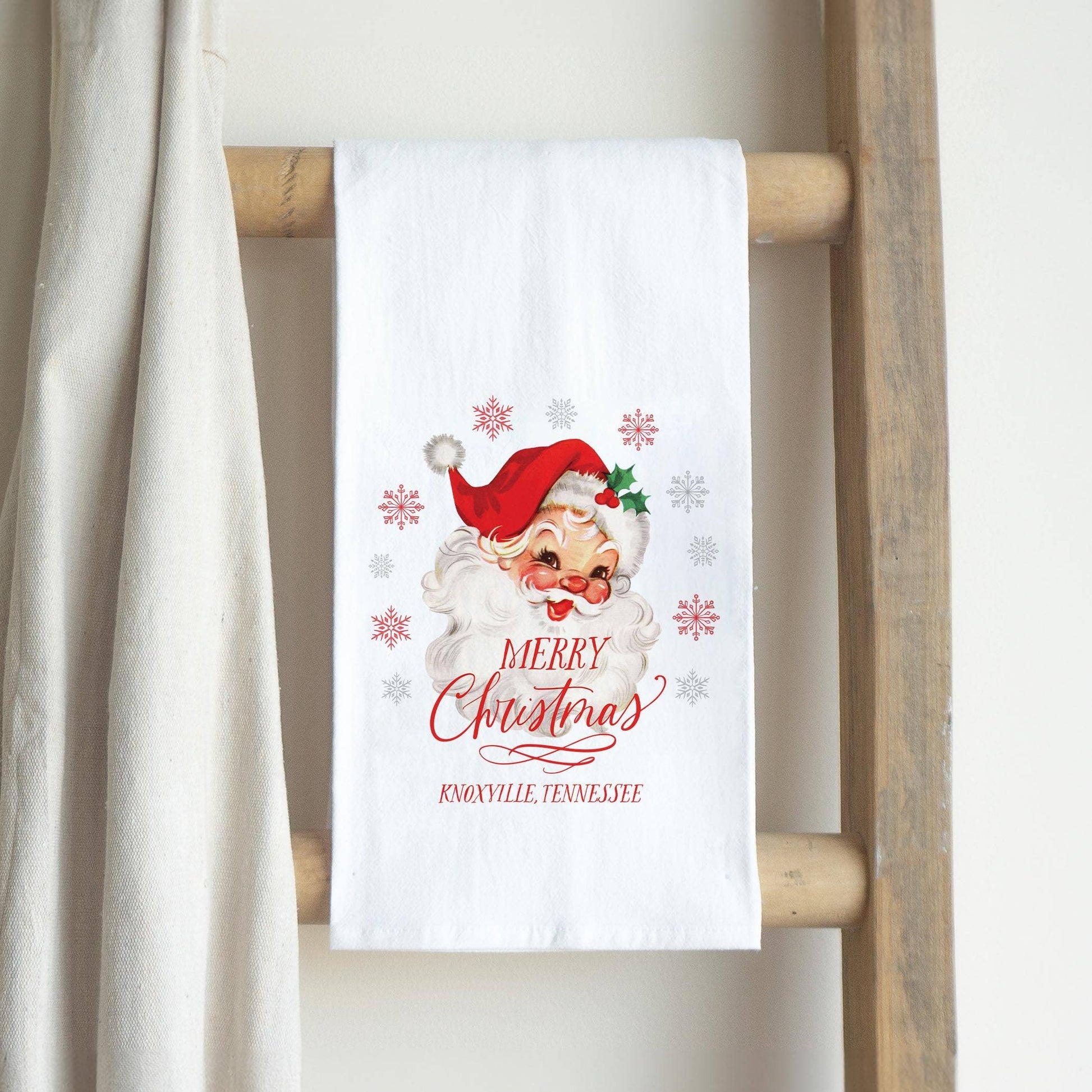 Celebrate the warmth of Knoxville, Tennessee, with our Classic Santa Cotton Tea Towel. Infused with local charm and holiday spirit, this piece is designed to elevate your kitchen or dining space during the festive season. The delightful Santa design, bursting with joy and nostalgia, serves as a versatile addition that not only enhances your decor but also engages your customers in the heart of community celebrations.