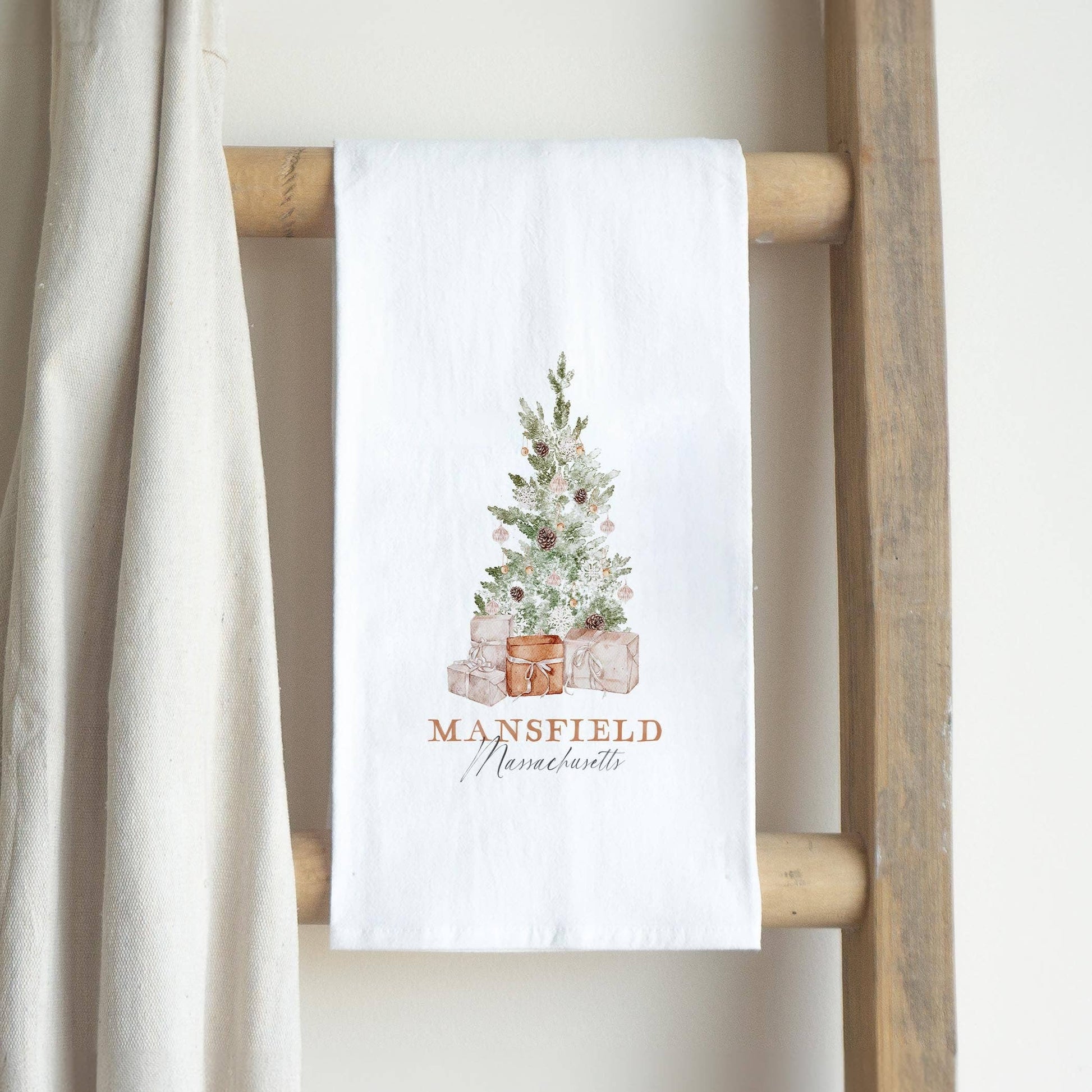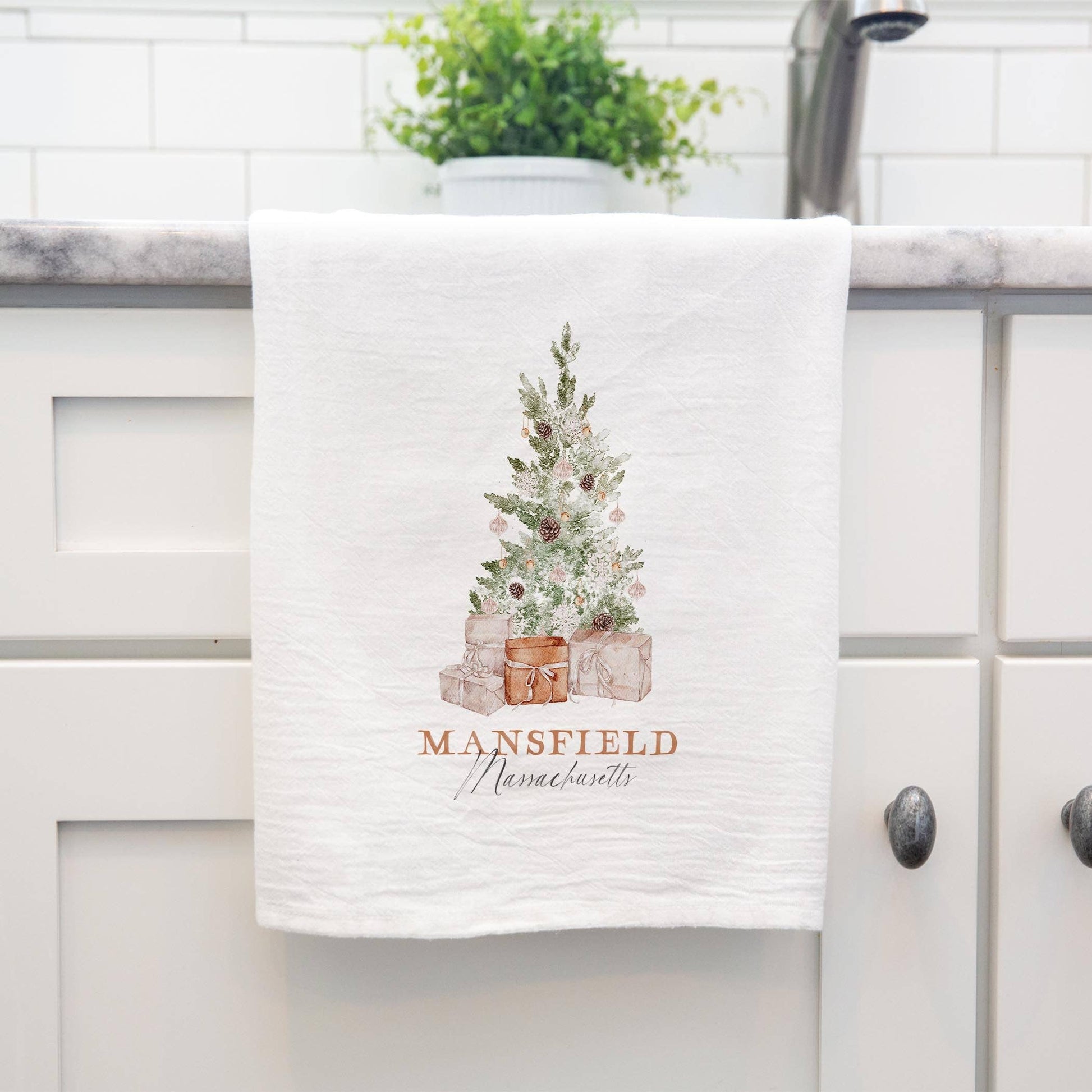 In the heart of Mansfield, Massachusetts, our Cotton Tea Towel from the Crystal Cottage collection brings warmth and charm to your kitchen. Each towel showcases a delightful printed design that captures the small-town spirit and invites everyone to embrace the little joys of everyday life. The beautifully illustrated motif features a festive tree adorned with gifts, making it a delightful addition to your holiday décor and perfect for those cozy family gatherings.