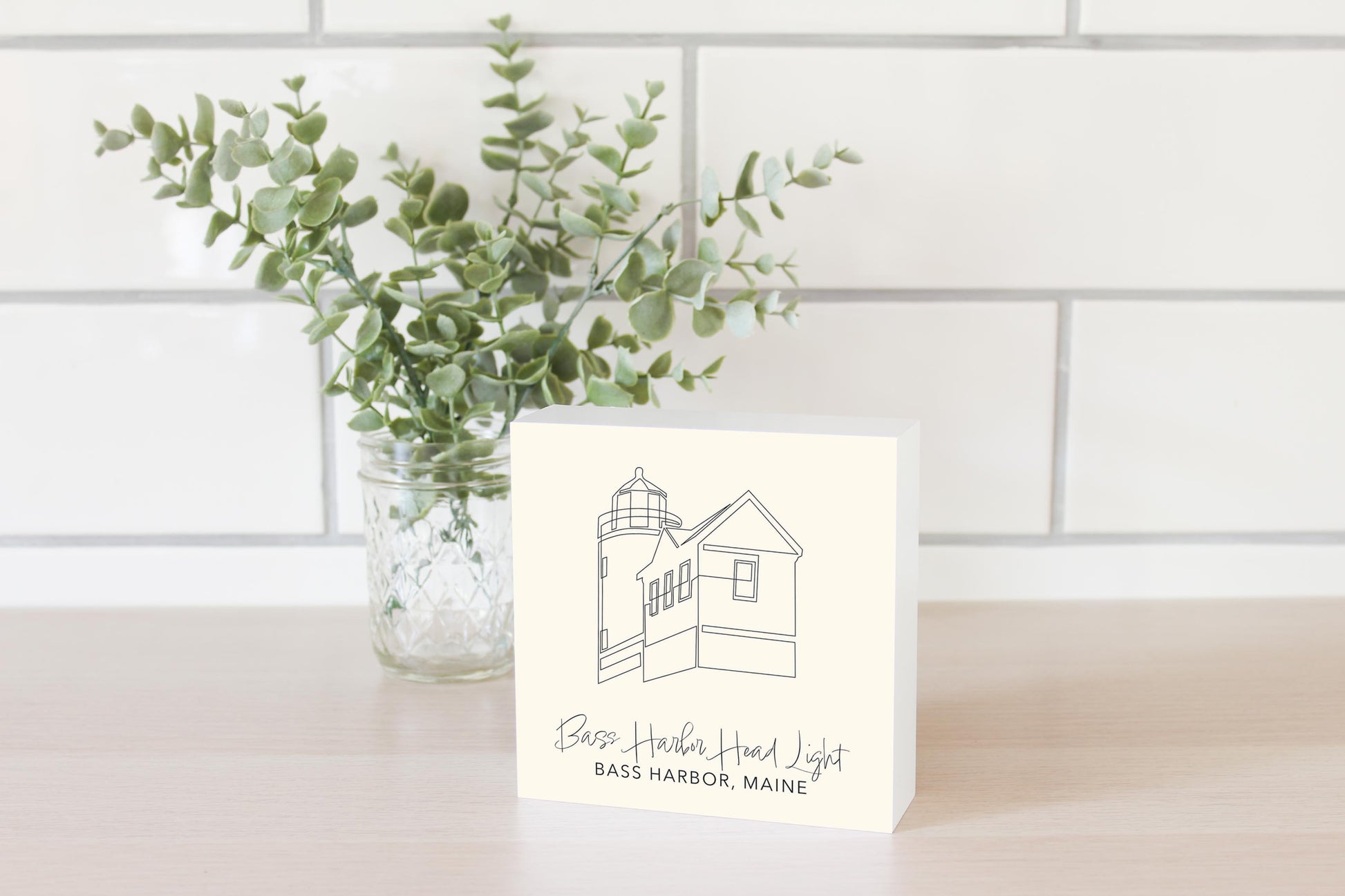 Cream Bass Harbor Head Light | Wood Block | Eaches | Min 4