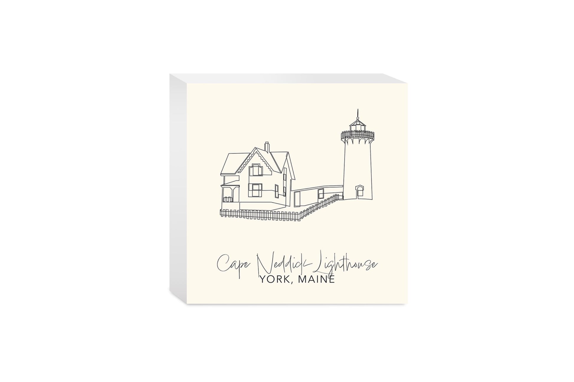 Cream Cape Neddick Lighthouse | Wood Block | Eaches | Min 4