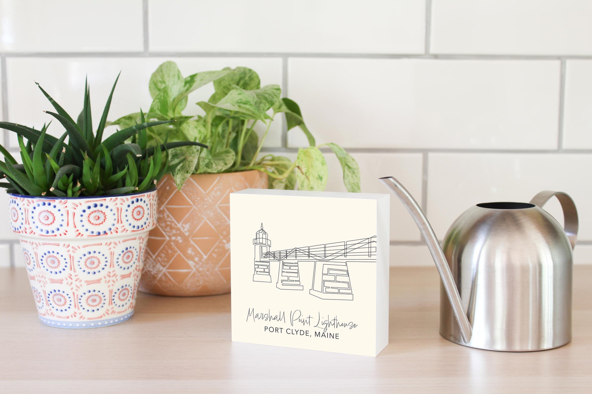 Cream Marshall Point Lighthouse | Wood Block | Eaches | Min 4