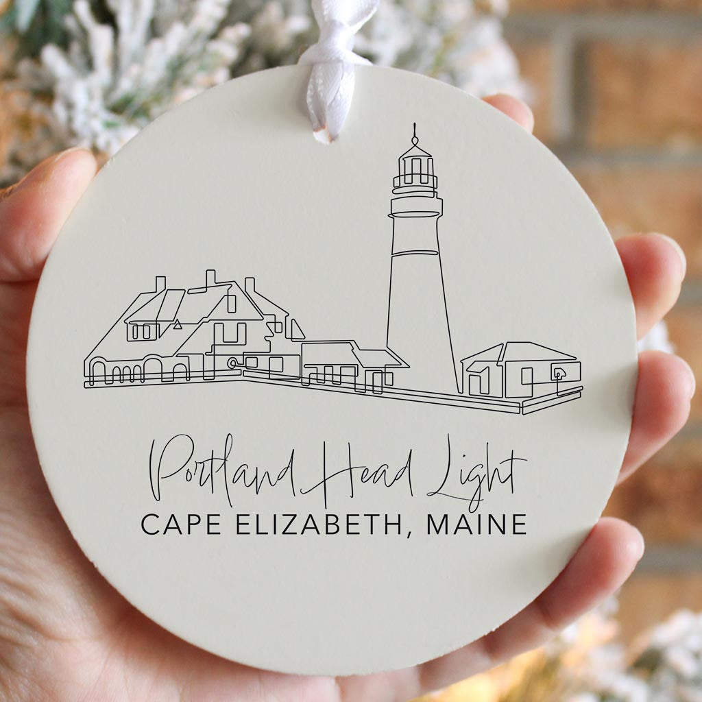 Cream Portland Head Light| Wood Ornament | Eaches | Min 6