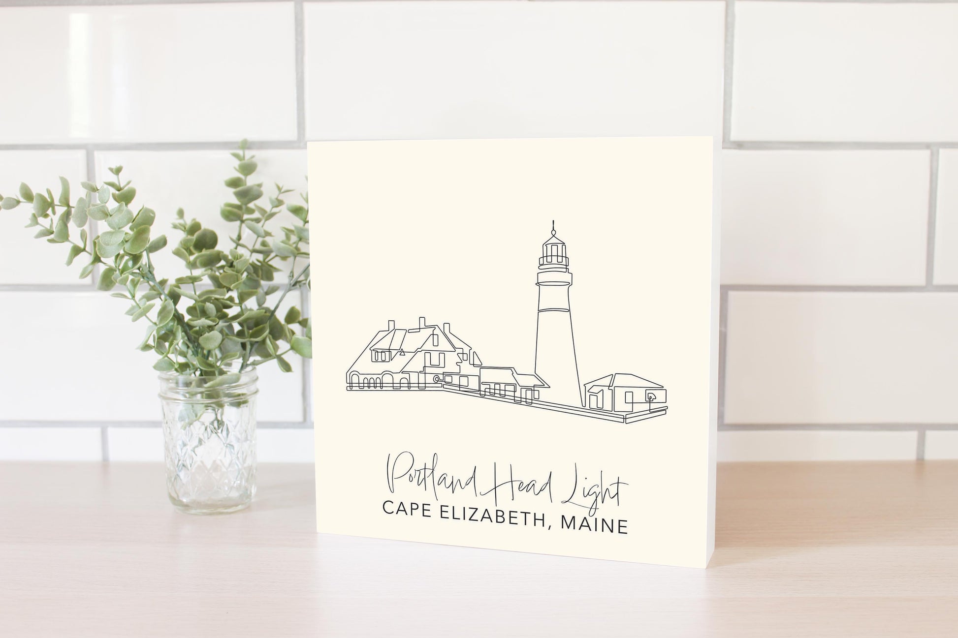 Cream Portland Head Light | Wood Block | Eaches | Min 2