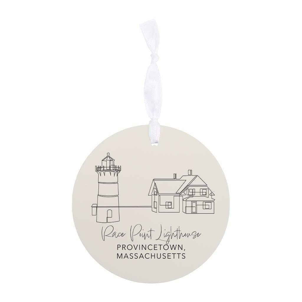 Cream Race Point Lighthouse| Wood Ornament | Eaches | Min 6