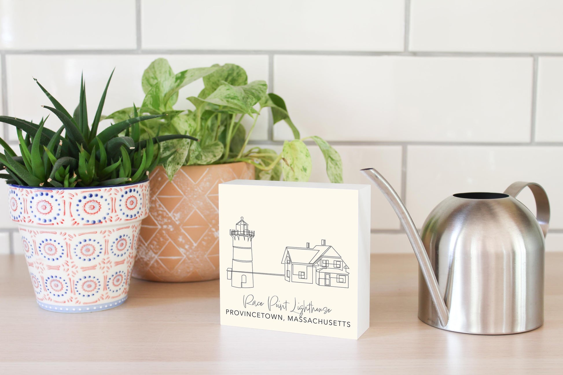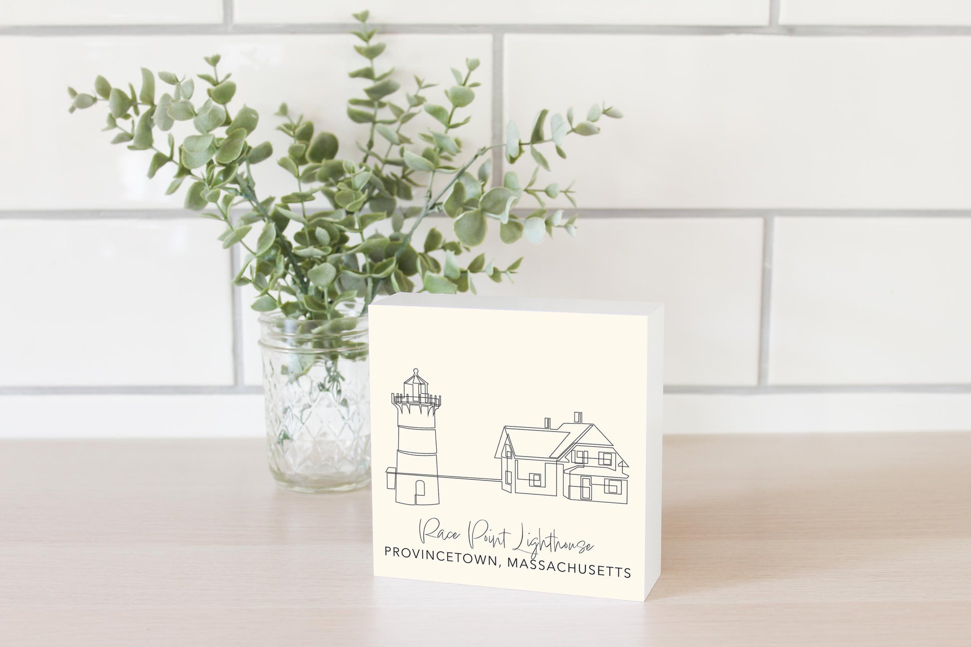 Cream Race Point Lighthouse | Wood Block | Eaches | Min 4