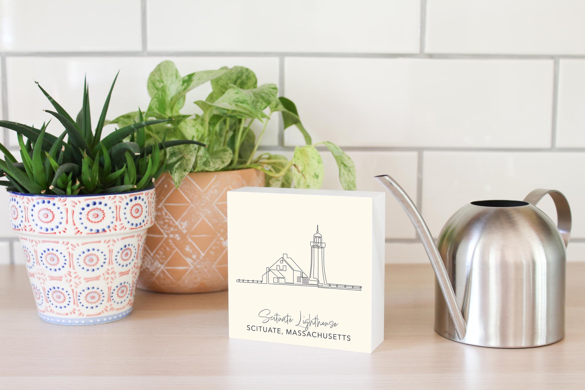 Cream Scituate Lighthouse | Wood Block | Eaches | Min 4