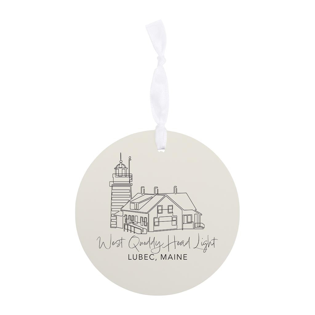 Cream West Quoddy Head Light | Wood Ornament | Eaches | Min 6