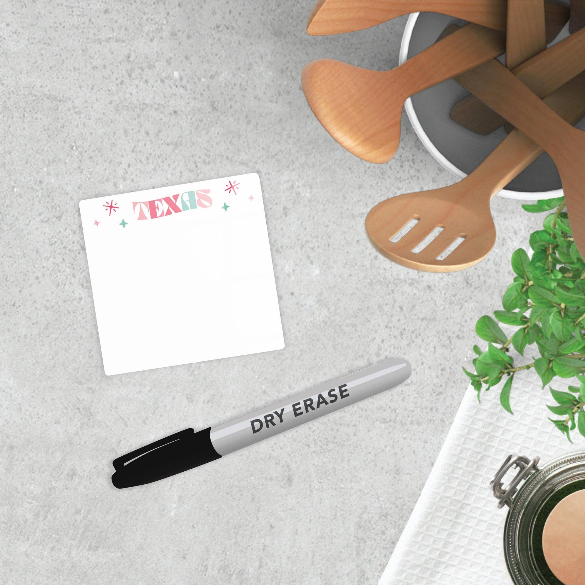 Measuring a perfect 4" square, this dry erase tile features a smooth glass surface complemented by an eco-friendly cork backing that ensures it stays securely in place while protecting your surfaces. Each tile is not only functional but also a stylish desktop accessory that doubles as art. It is easy to wipe clean, making it a versatile addition to any desk or kitchen counter.