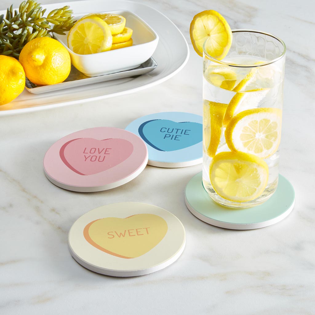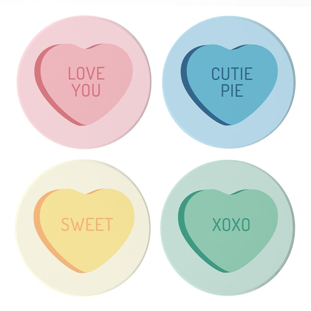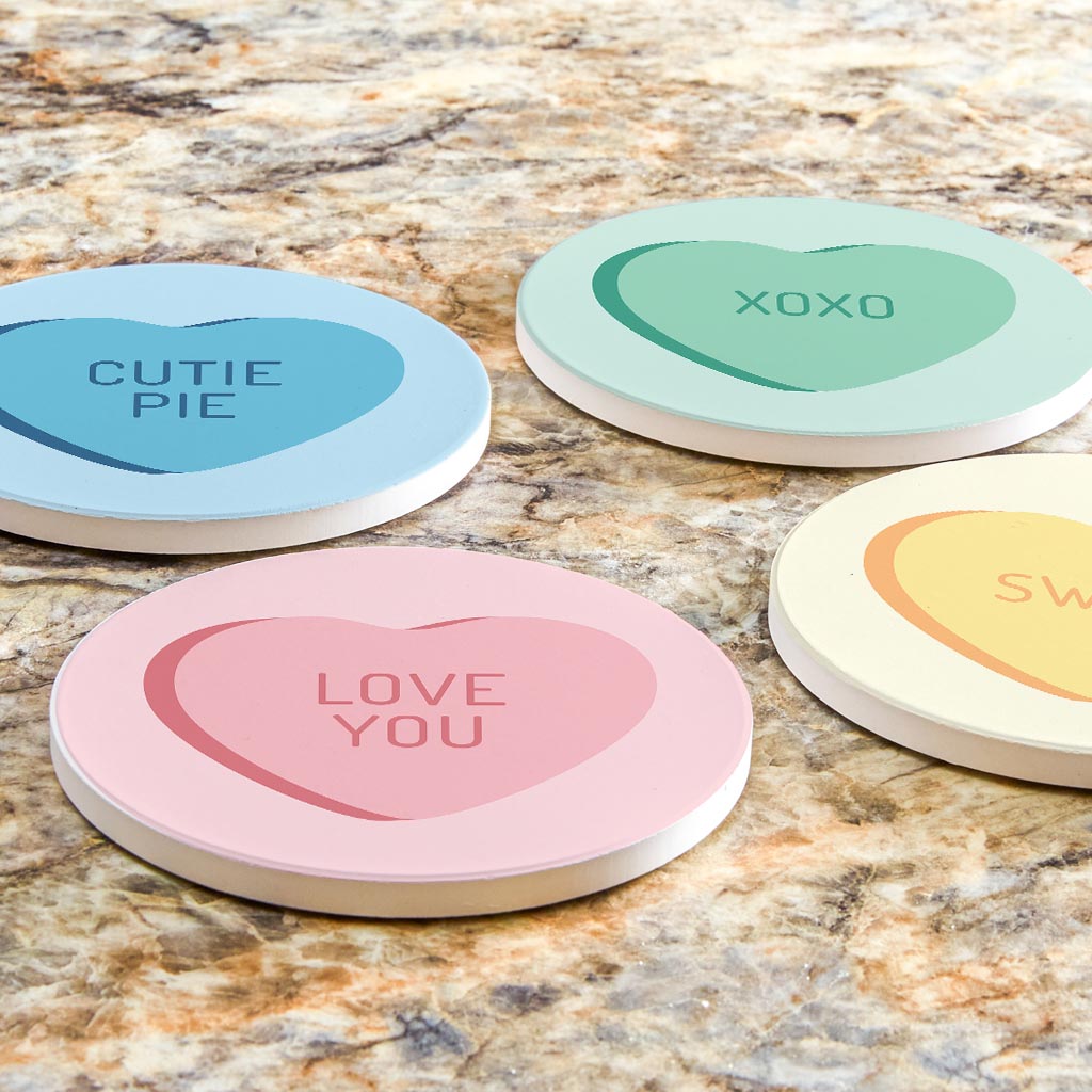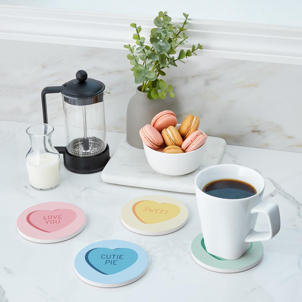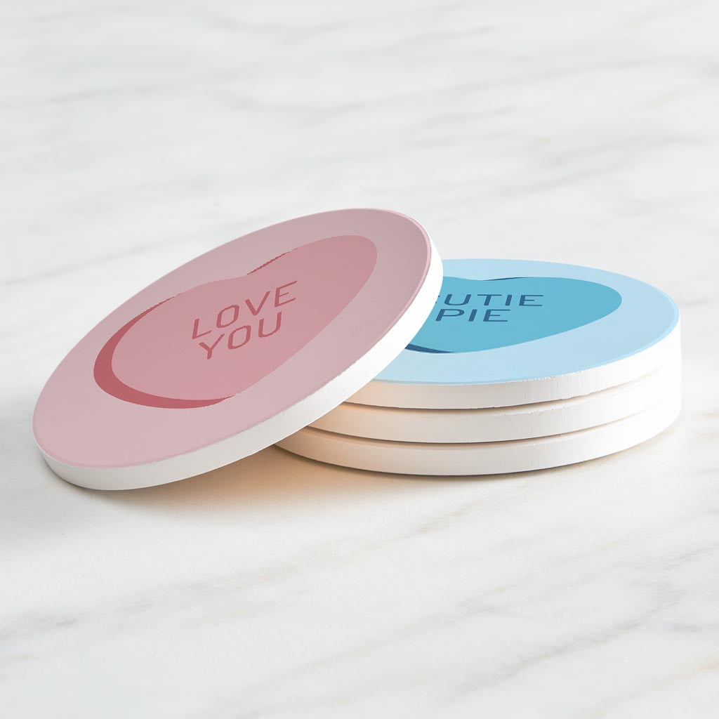 Cute Message Hearts With Sayings | Absorbent Coasters | Set of 4 | Min 2