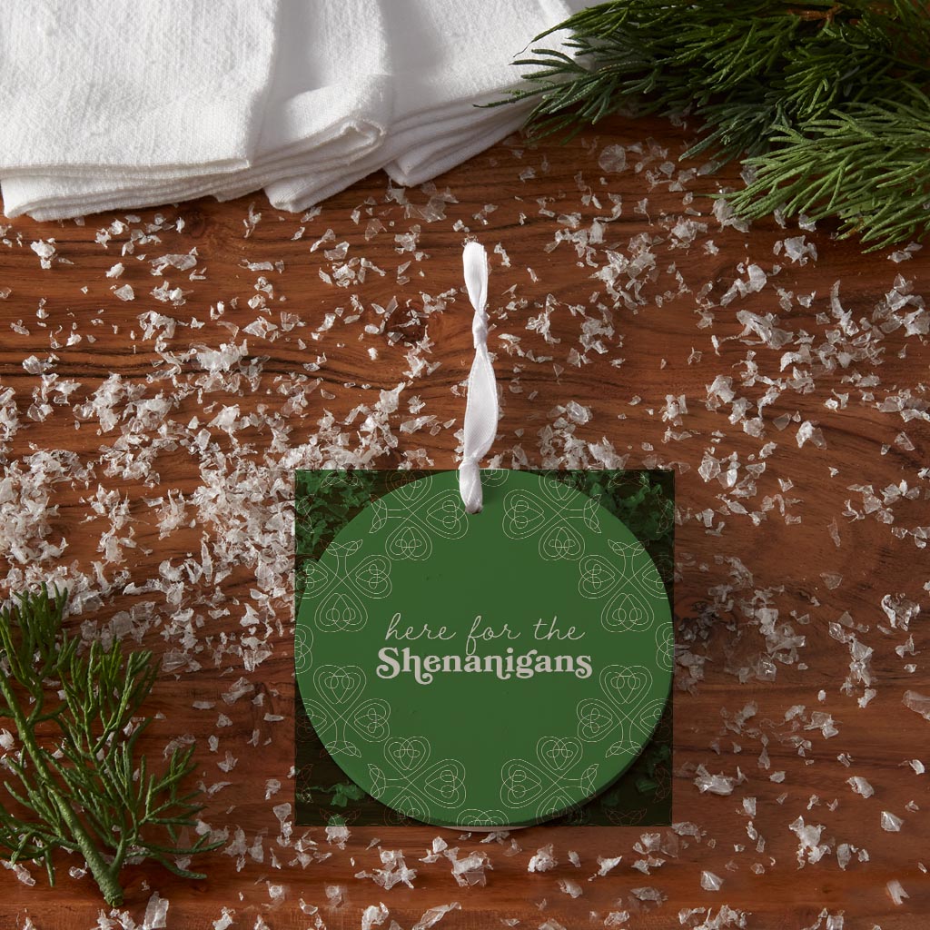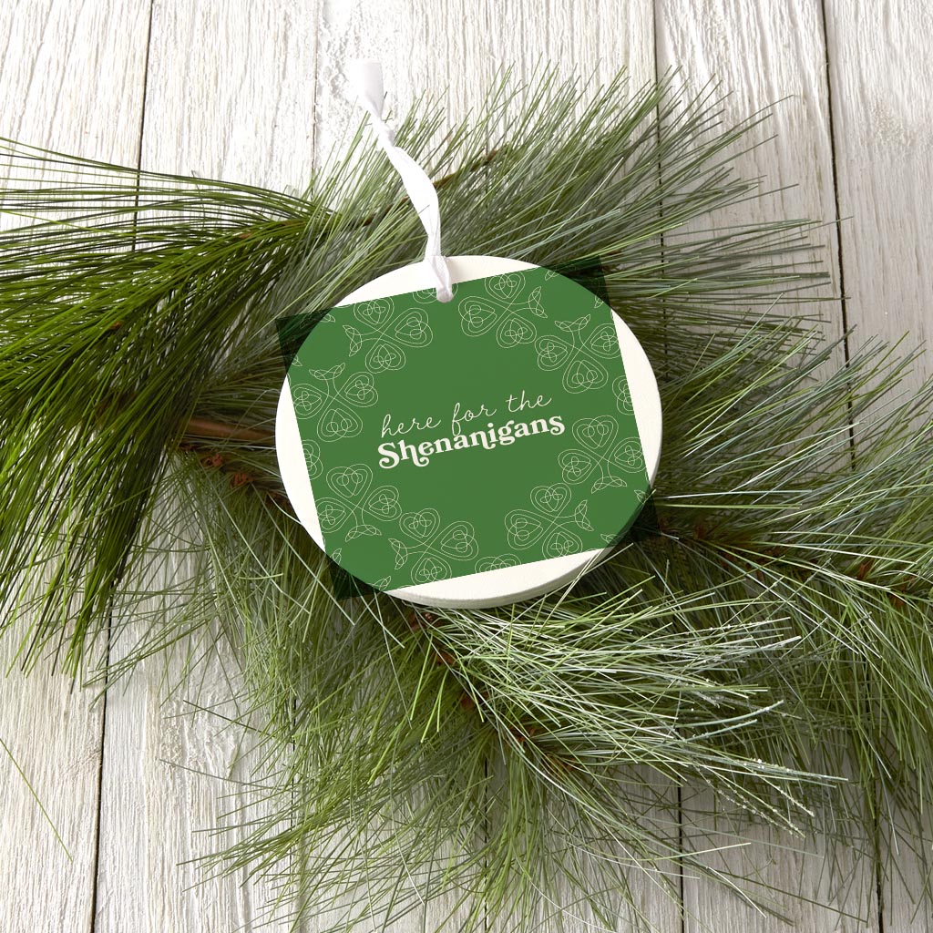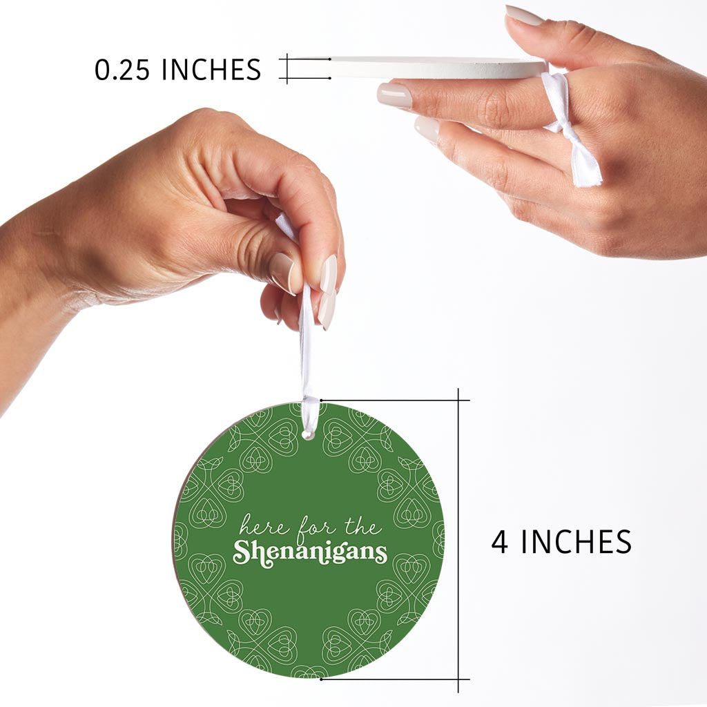 Dark Green Shamrock Here For The Shenanigans | Wood Ornament | Eaches | Min 6