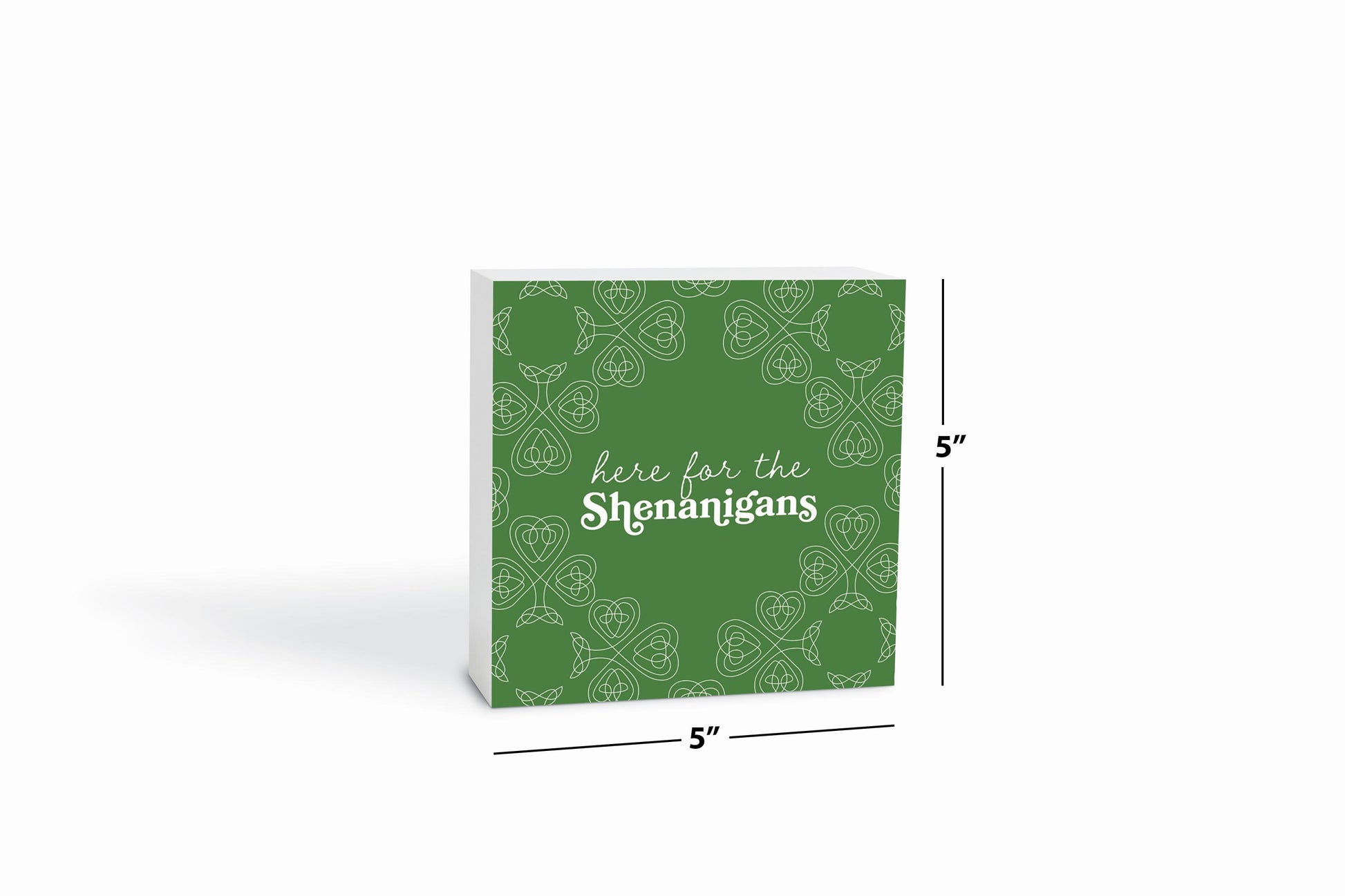 Dark Green Shamrock Here For The Shenanigans | Wood Block | Eaches | Min 4