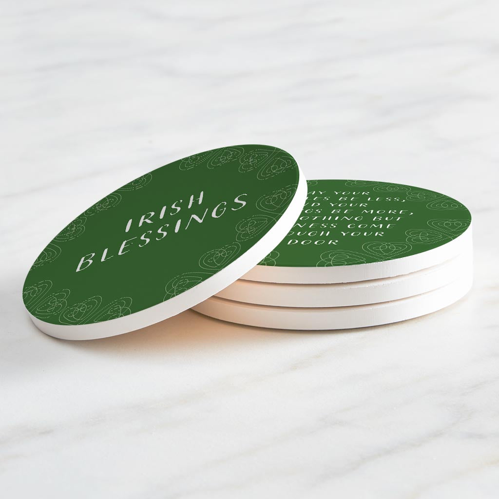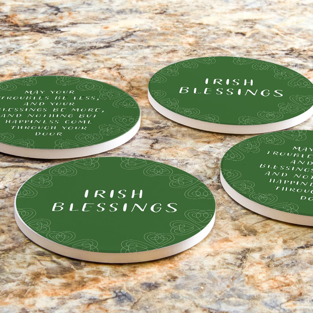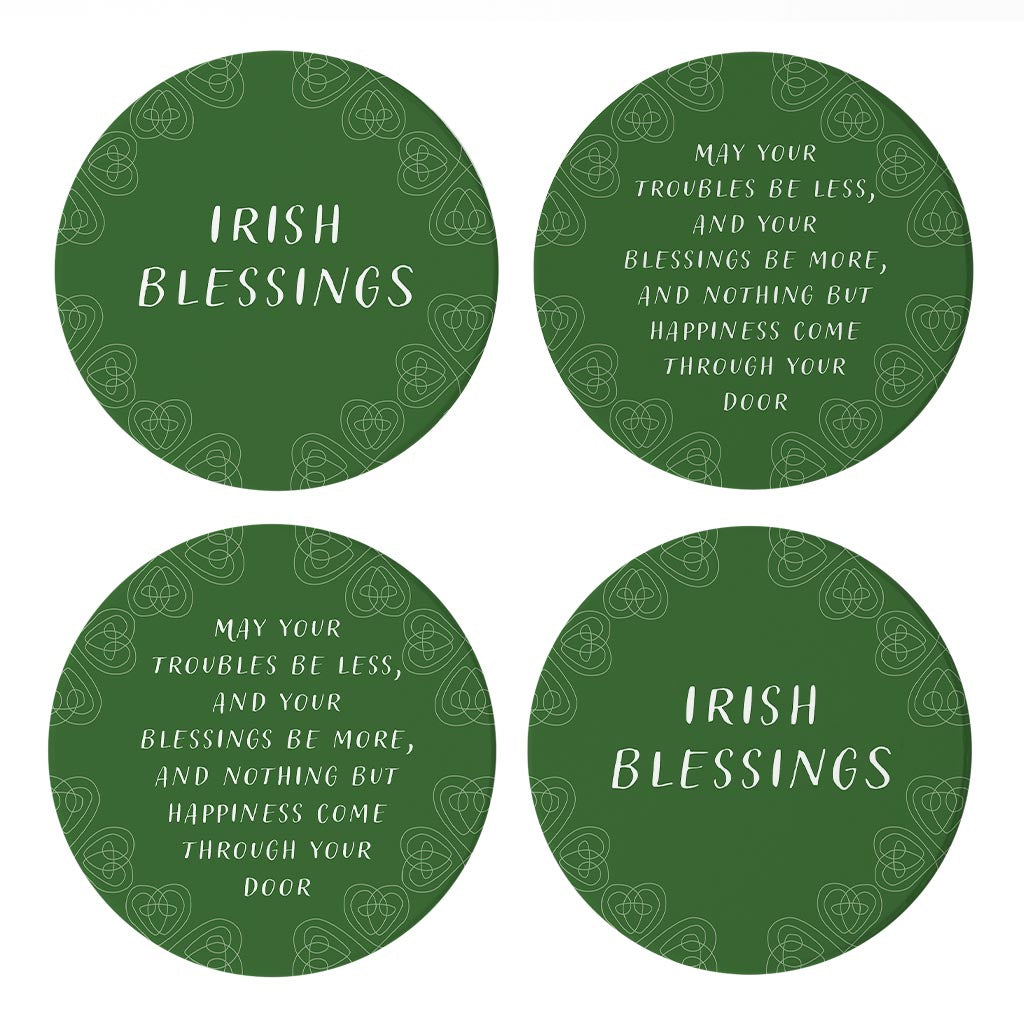 Dark Green Shamrock Irish Blessings Poem | Absorbent Coasters | Set of 4 | Min 2