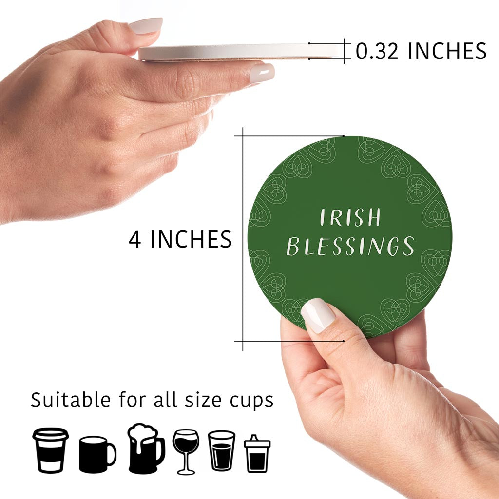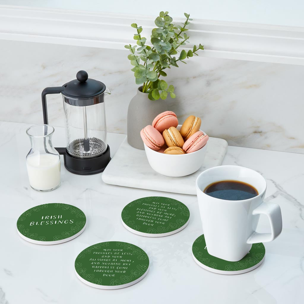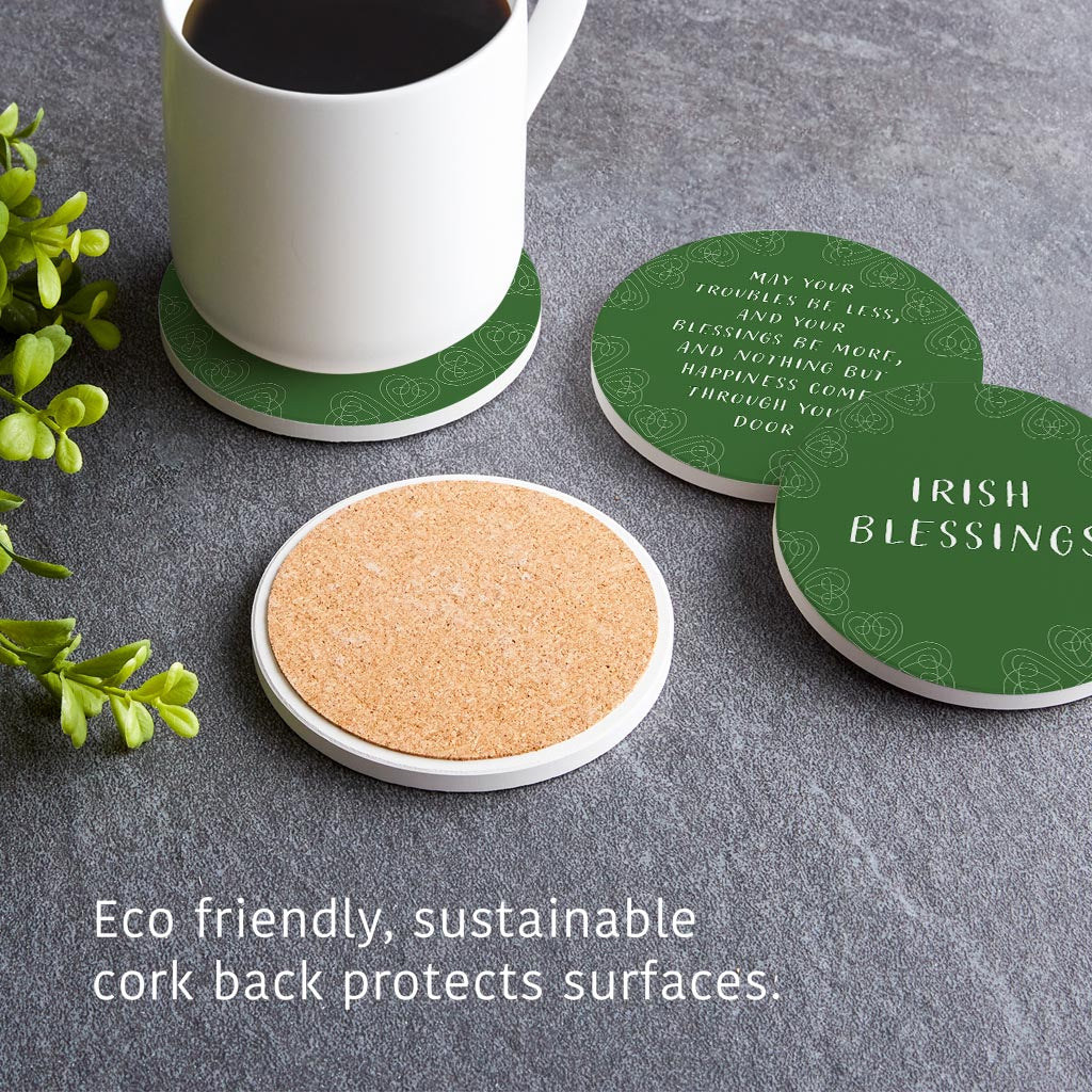 Dark Green Shamrock Irish Blessings Poem | Absorbent Coasters | Set of 4 | Min 2