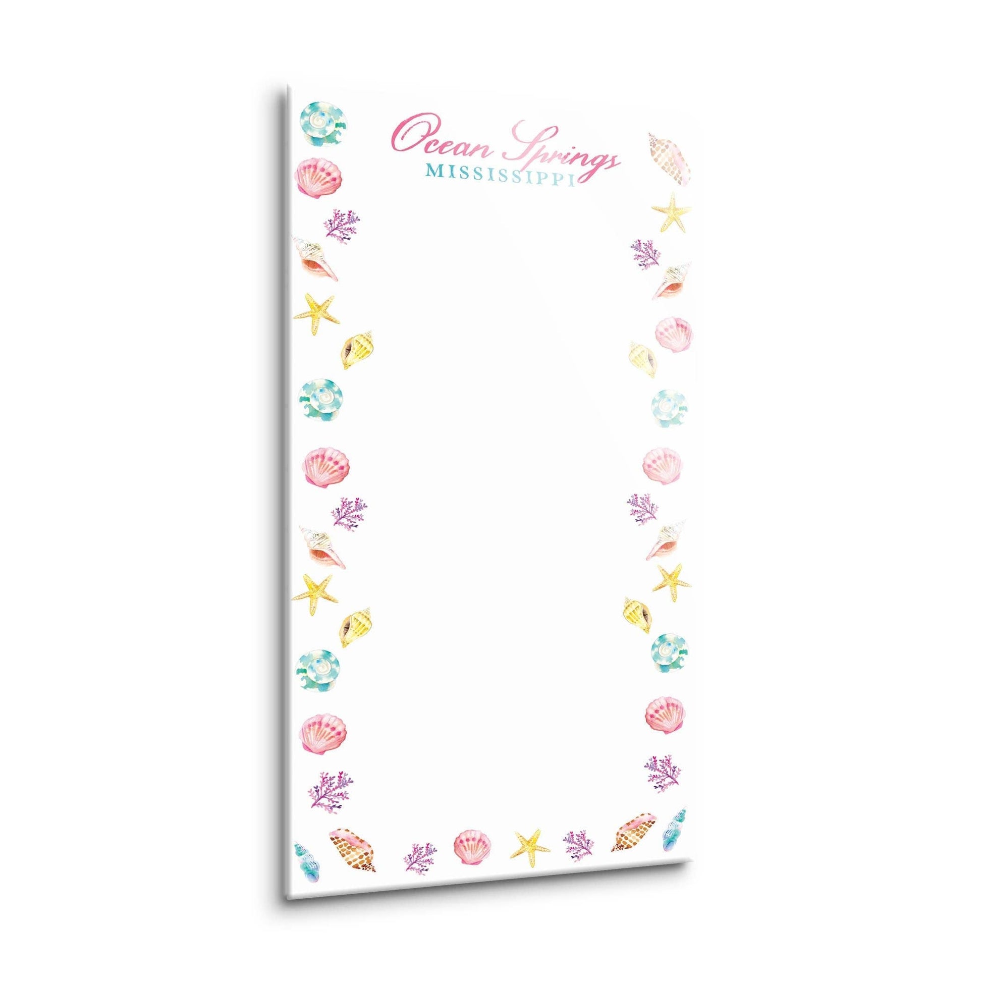 Embrace the coastal charm of Ocean Springs, Mississippi, with our Dry Erase Glass Sign. This captivating wall art is designed to bring a touch of the beach into any space—be it a home, office, or beach retreat. With its vibrant seashell motifs and dreamy shoreline accents, it serves as an uplifting reminder of coastal days spent by the water, making it a striking addition to your decor.