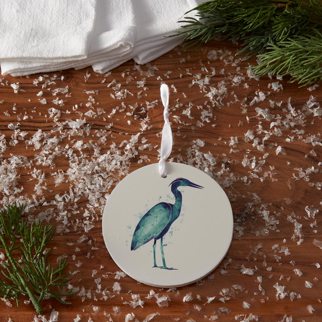 East Coast Water Color Heron | Wood Ornament | Eaches | Min 6