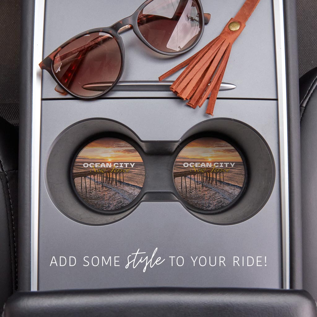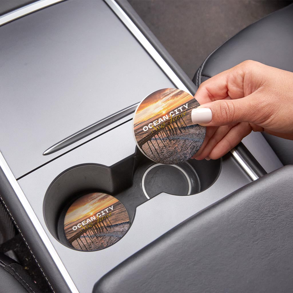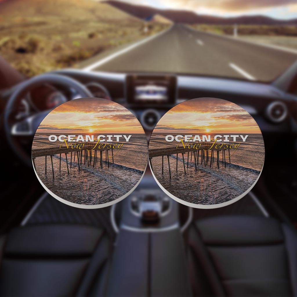 Fishing Pier Sunrise Car Coaster| Absorbent Car Coasters | Set of 2 | Min 4
