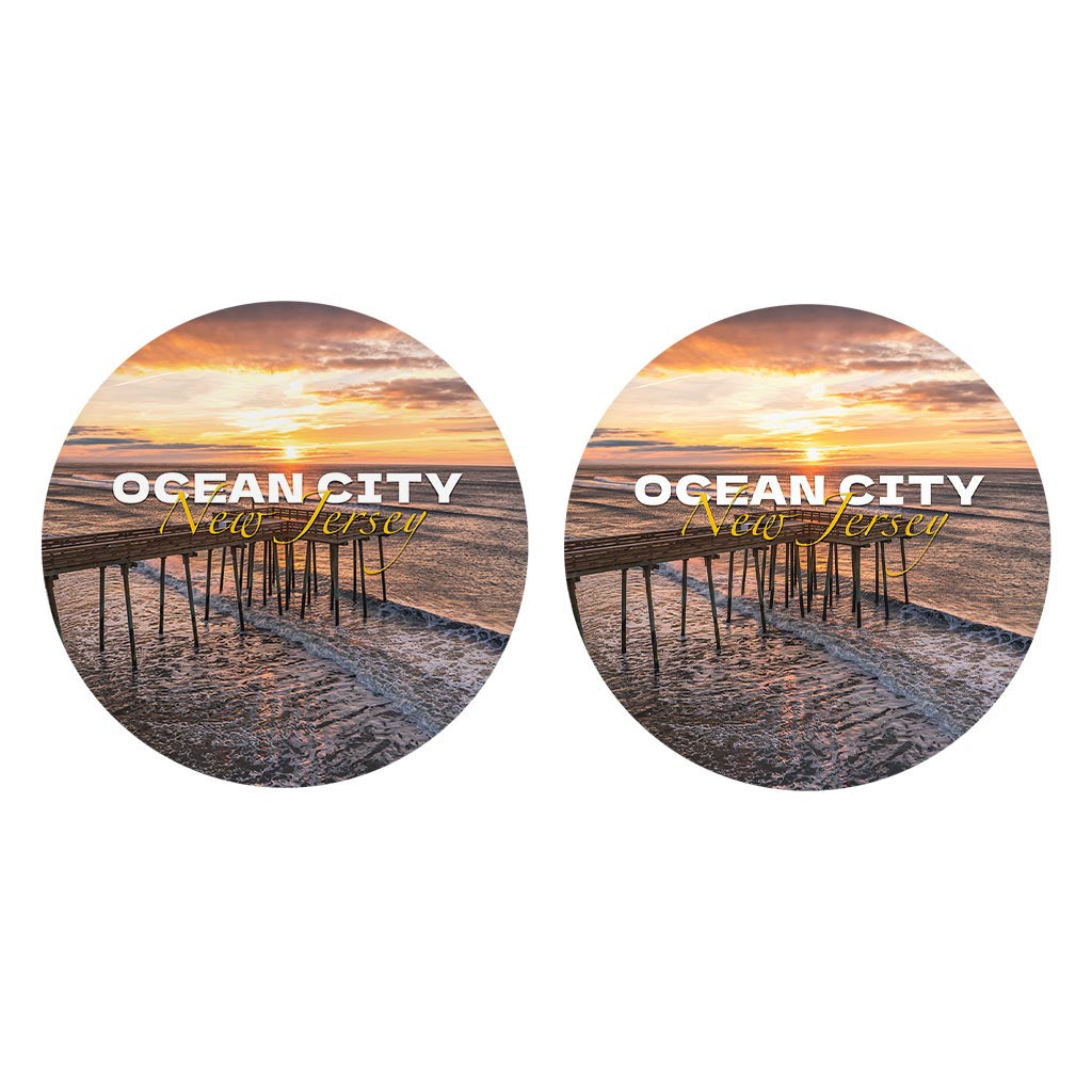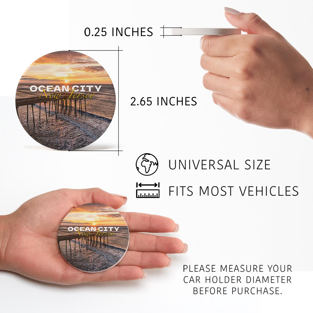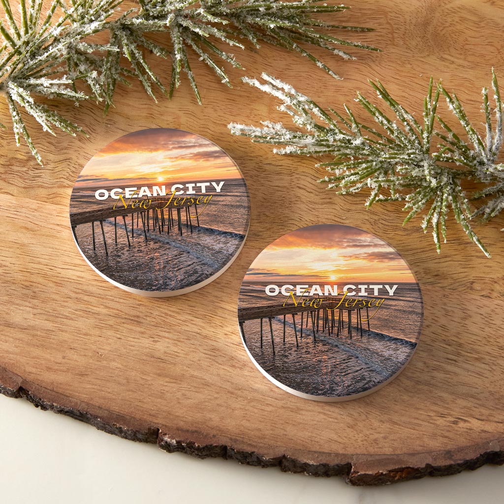 Fishing Pier Sunrise Car Coaster| Absorbent Car Coasters | Set of 2 | Min 4