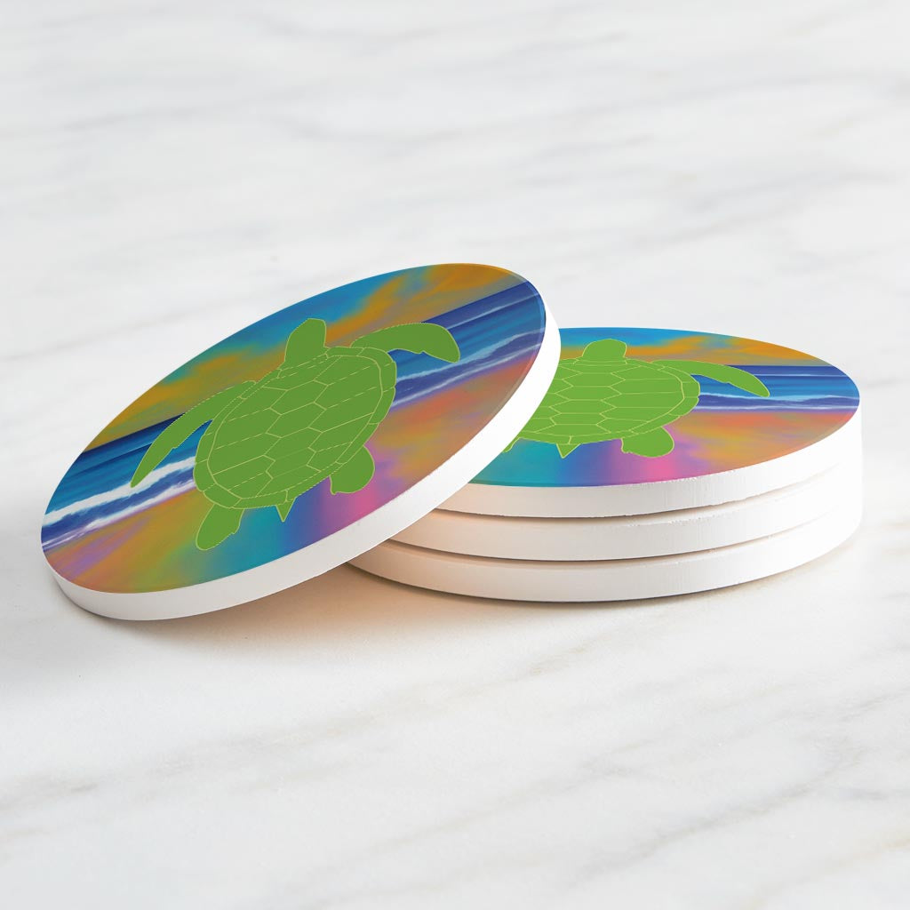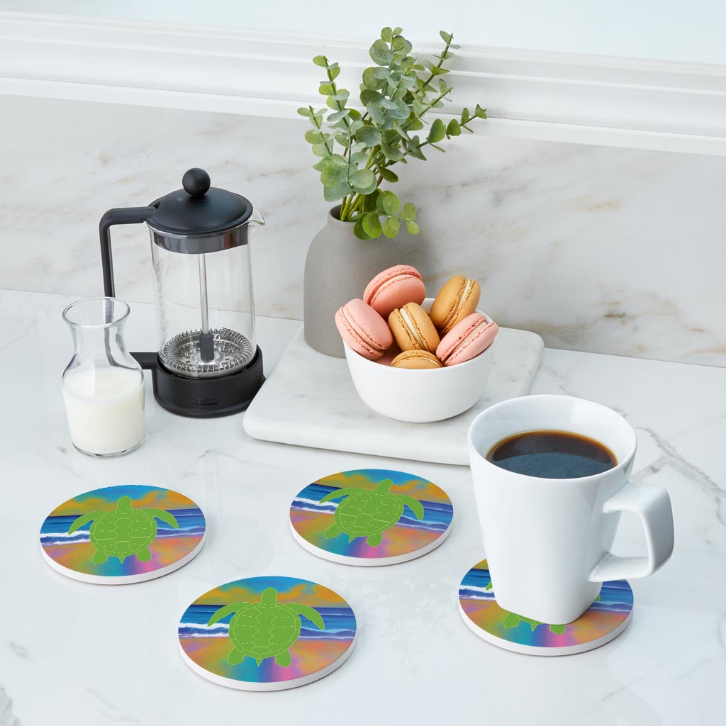 Florida Green Sea Turtle Icon| Absorbent Coasters | Set of 4 | Min 2