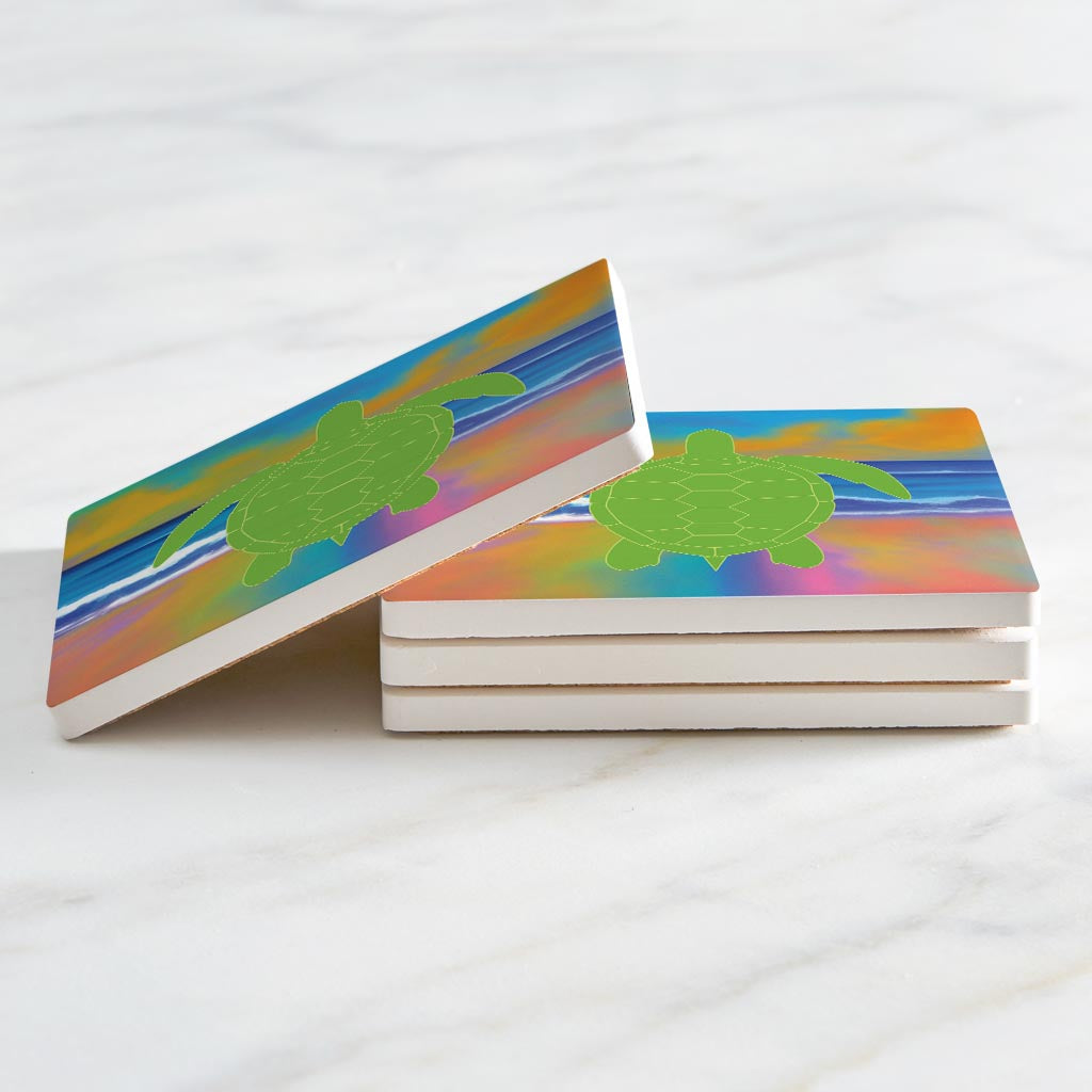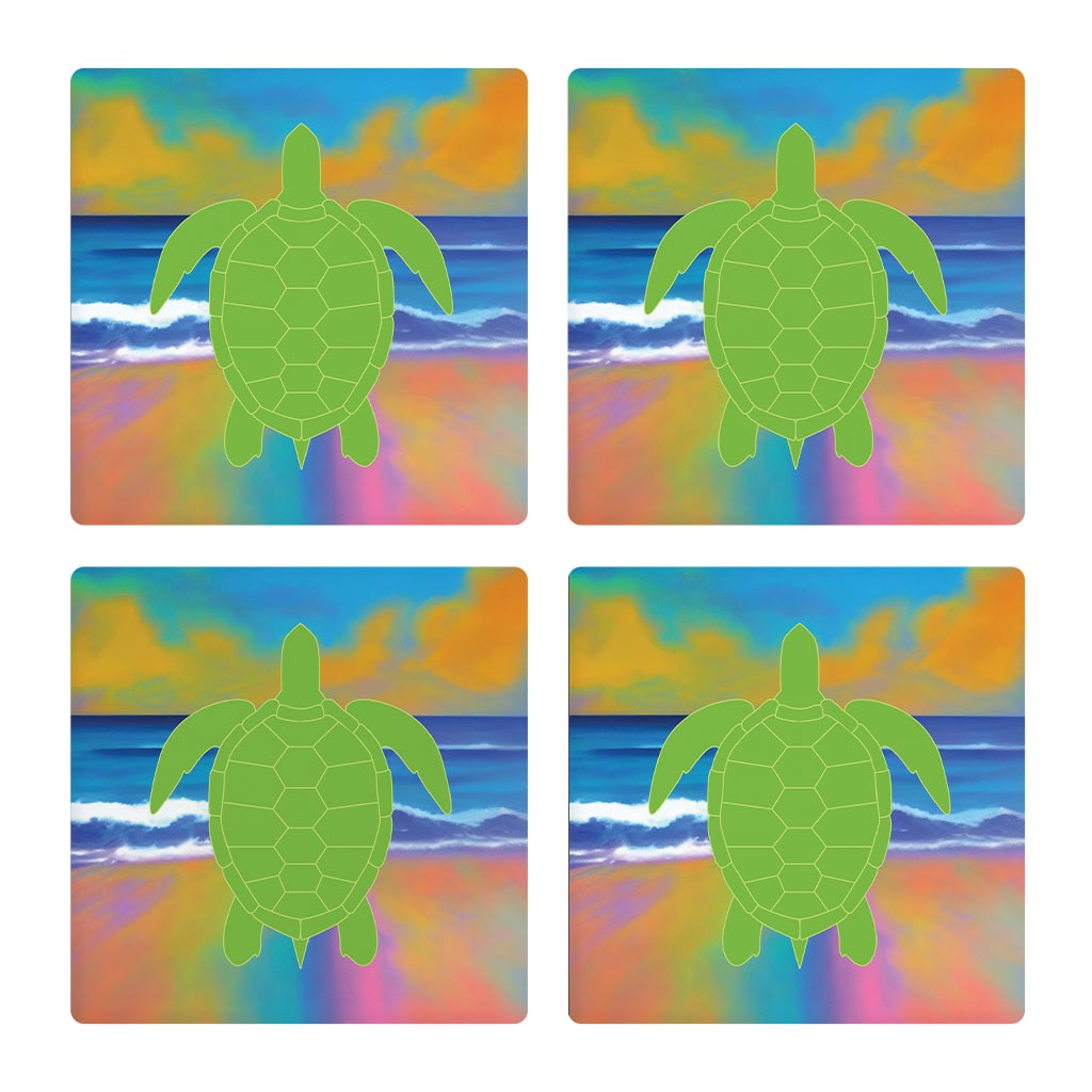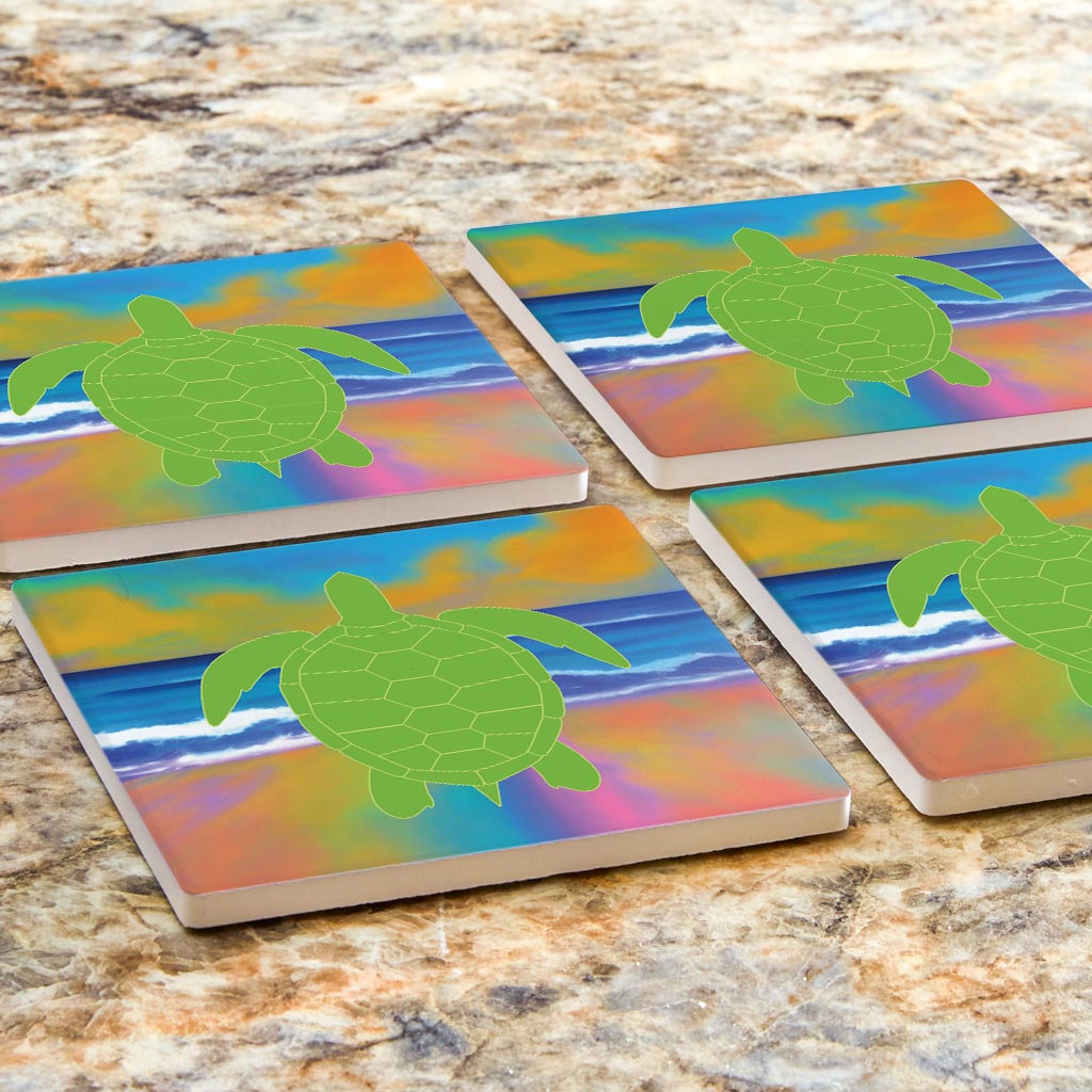 Florida Green Sea Turtle Icon | Absorbent Coasters | Set of 4 | Min 2