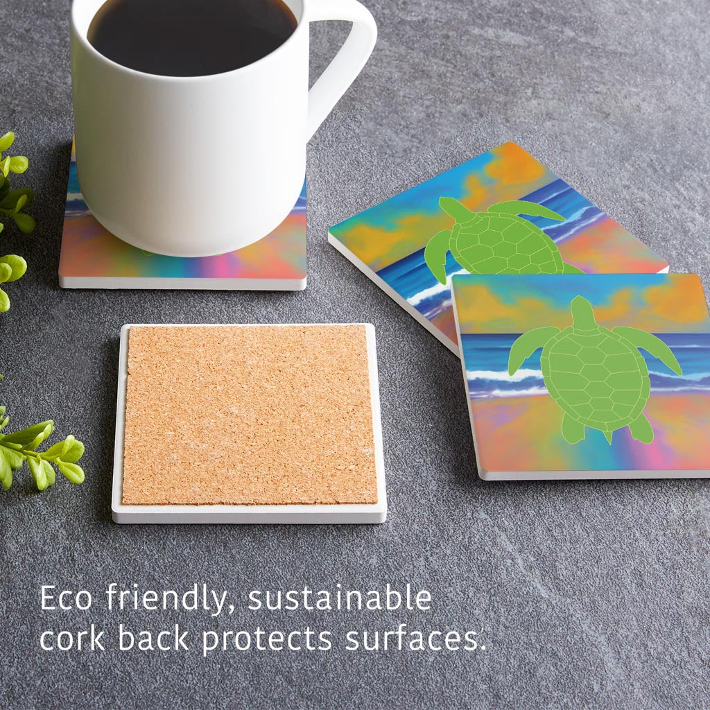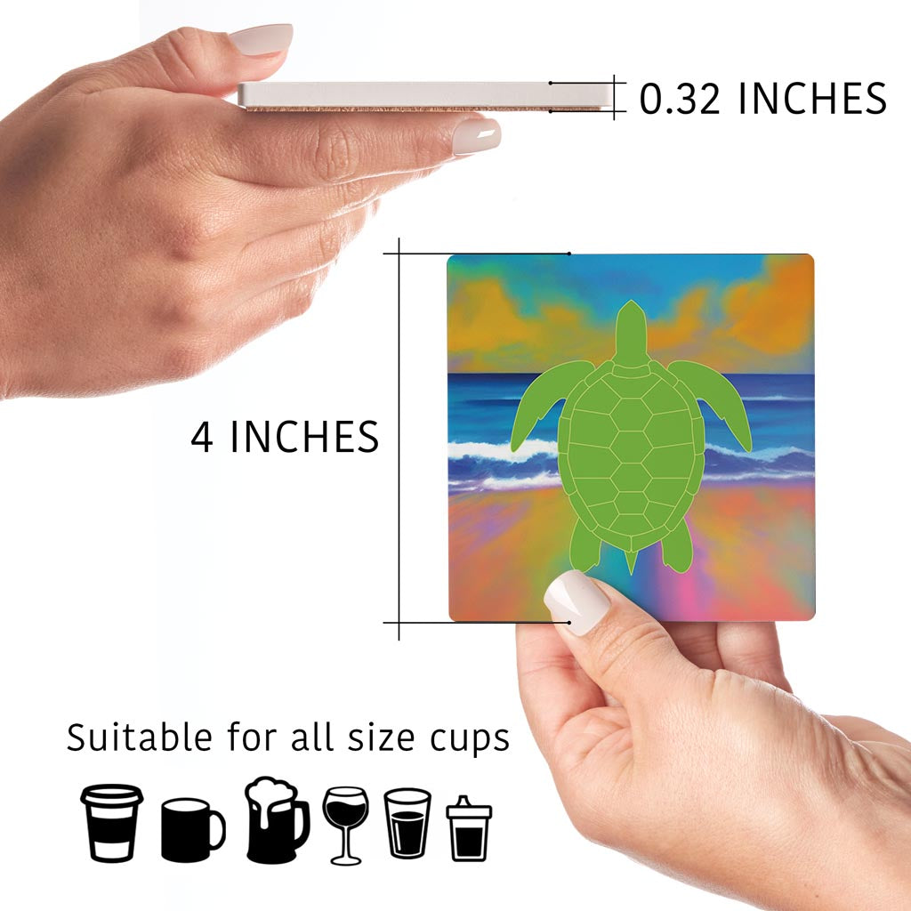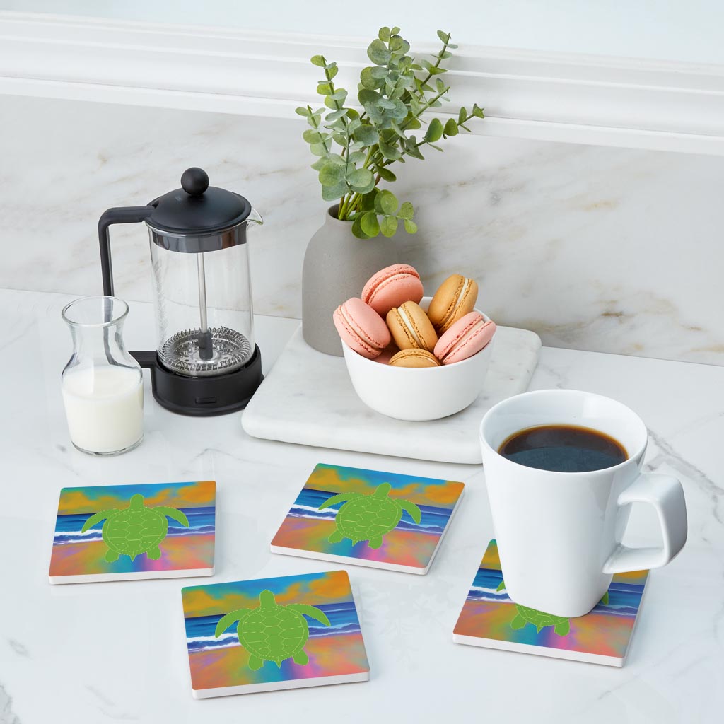 Florida Green Sea Turtle Icon | Absorbent Coasters | Set of 4 | Min 2