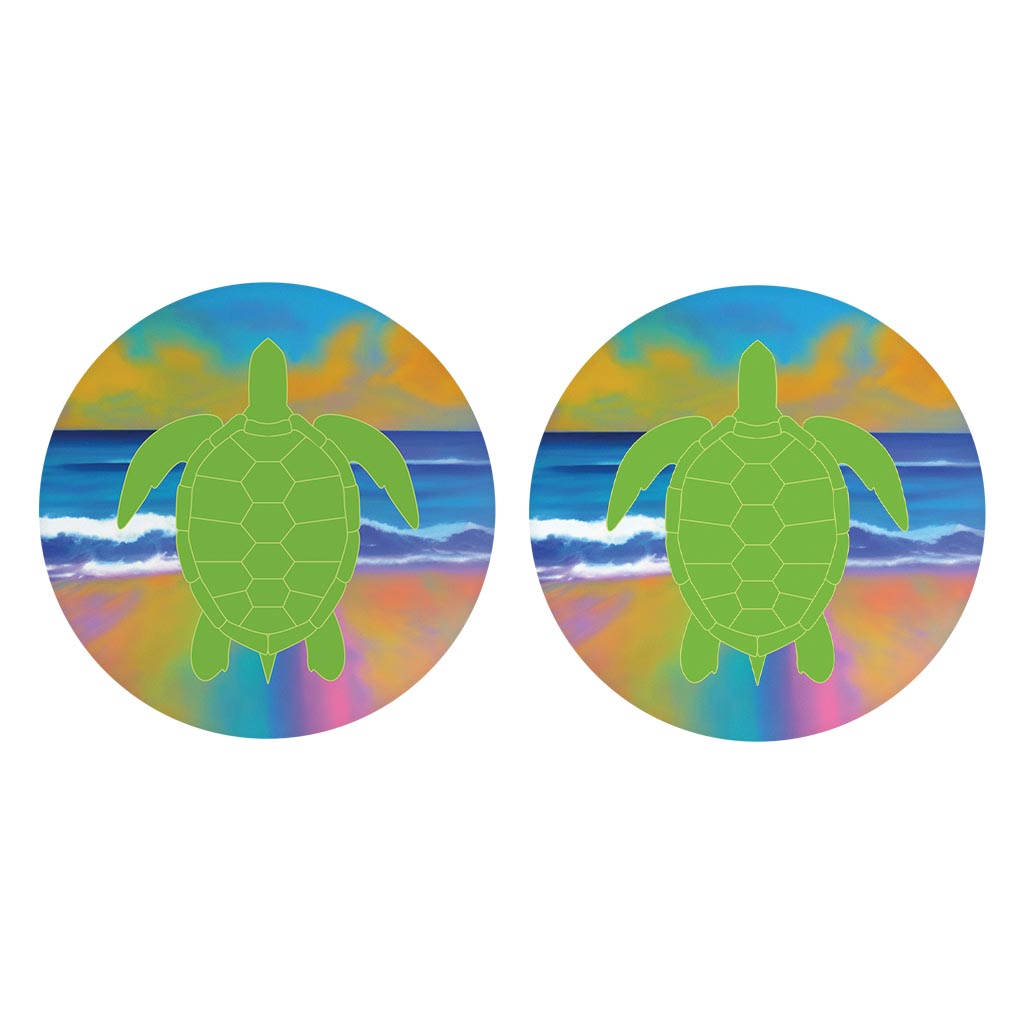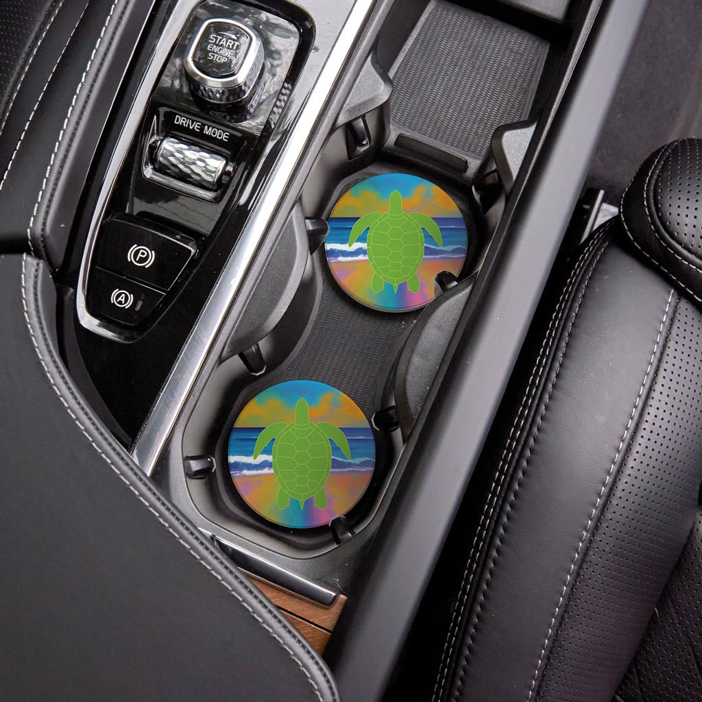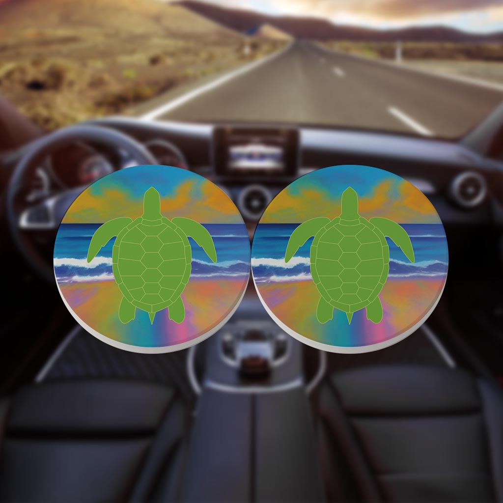 Florida Green Sea Turtle Icon | Absorbent Car Coasters | Set of 2 | Min 4