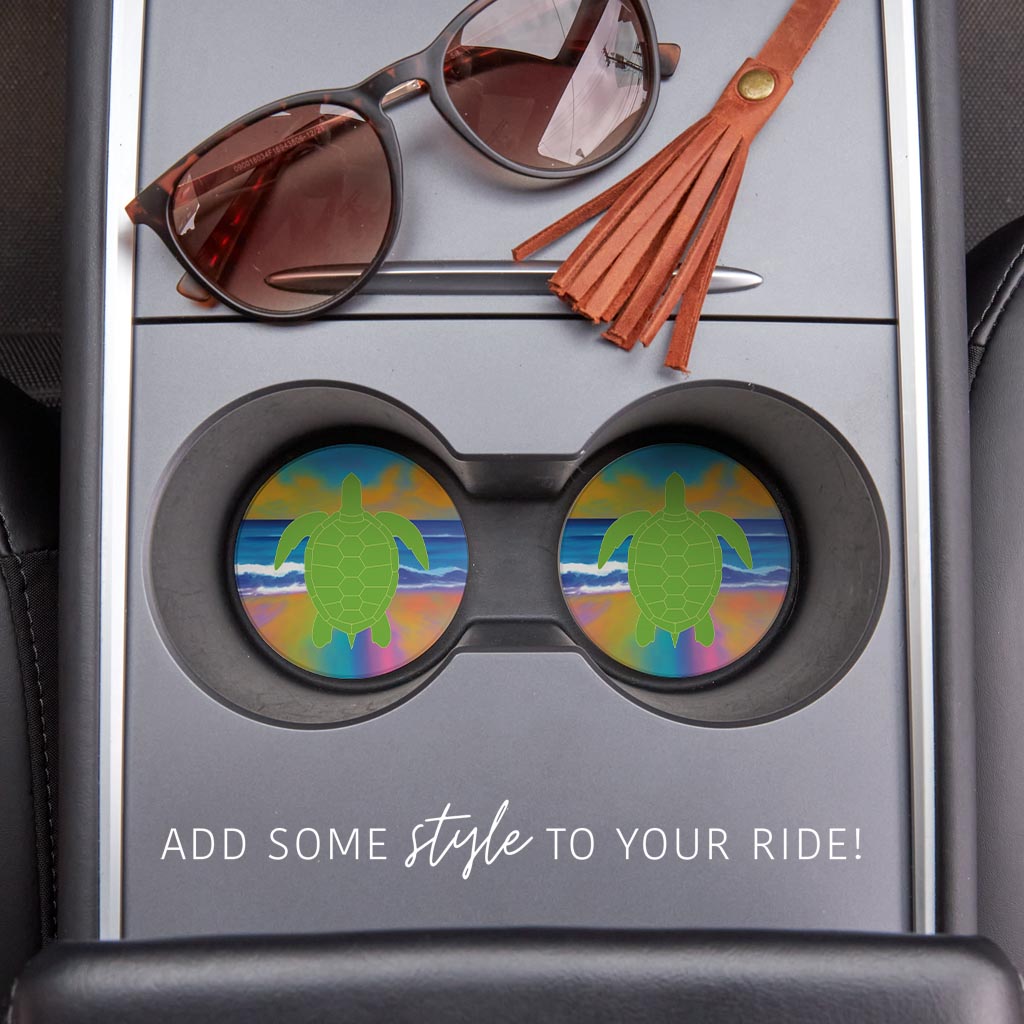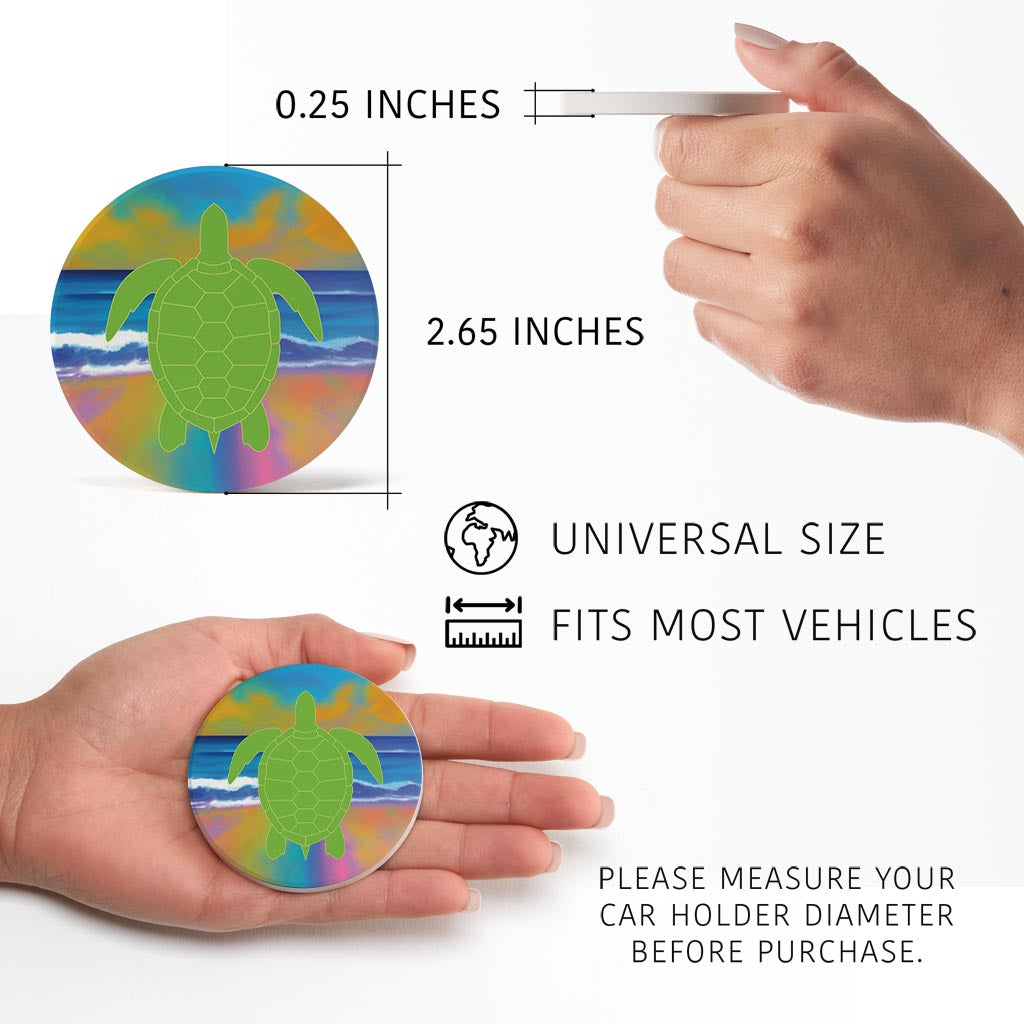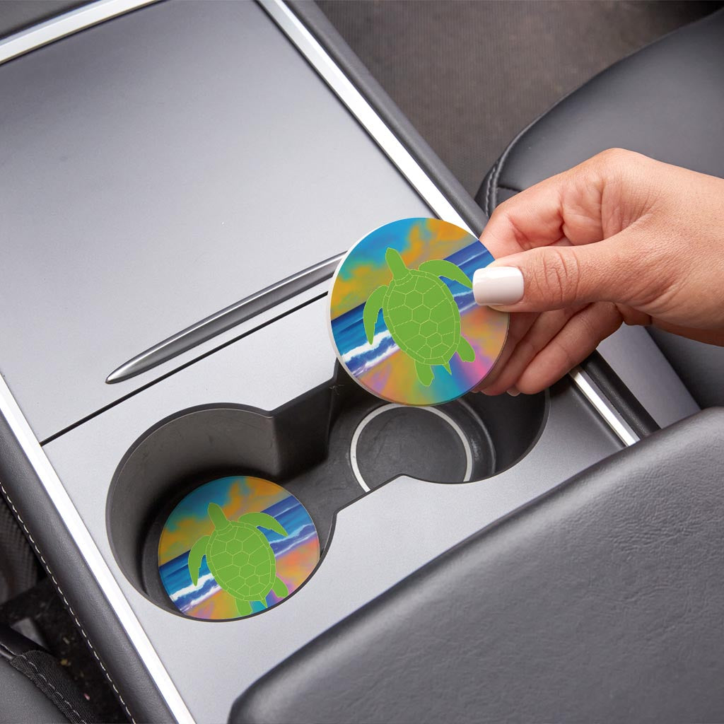Florida Green Sea Turtle Icon | Absorbent Car Coasters | Set of 2 | Min 4