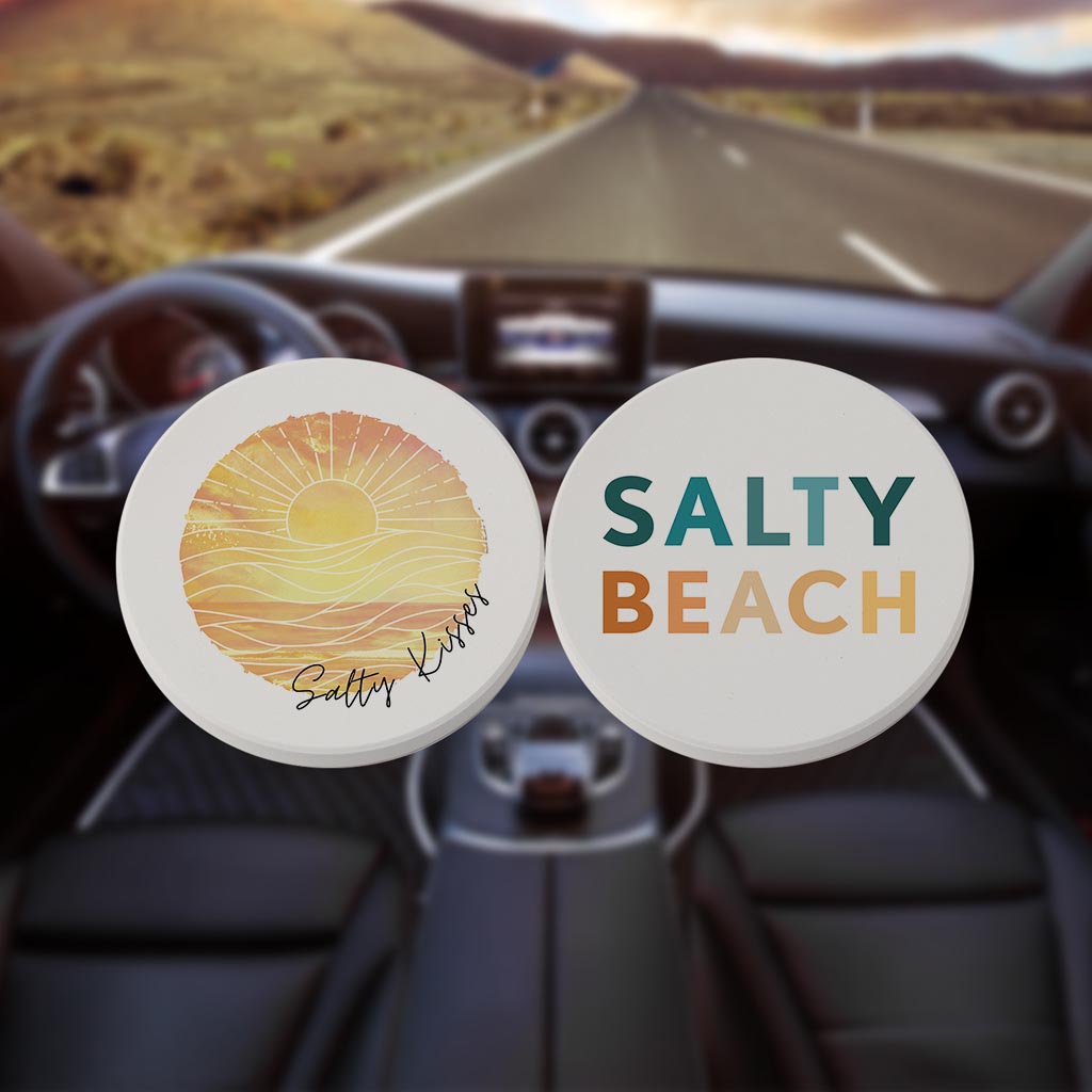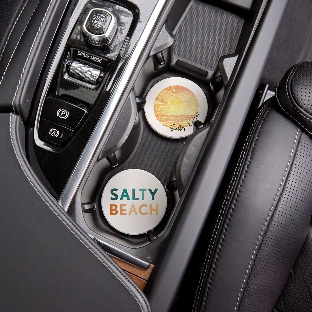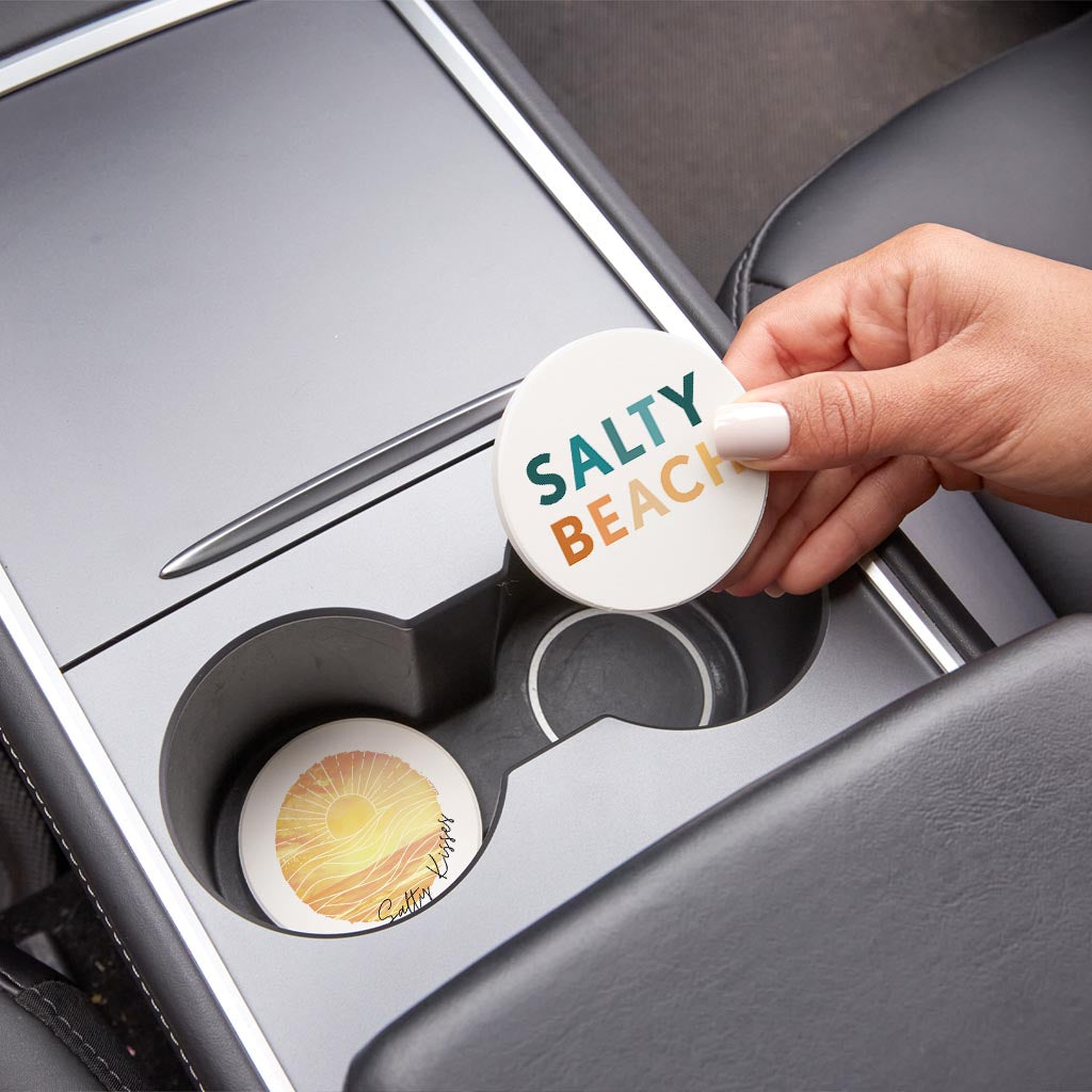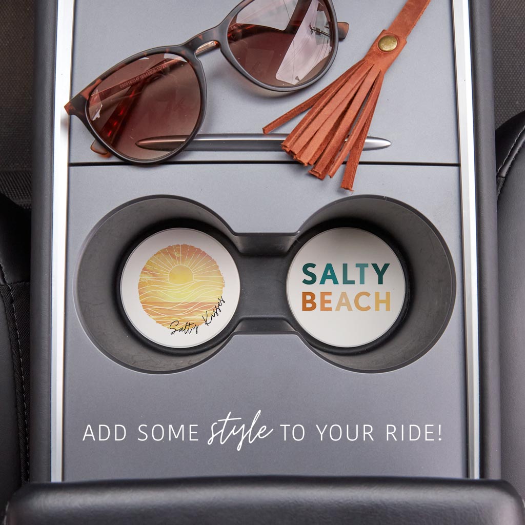 Car coasters are that little accessory that you didn’t know you needed but now consider an essential. Your cupholders are protected and kept clean by absorbing drips from your morning coffee to sticky juice boxes. The strategic divot edge allows you to easily pop it out and wipe clean. No more grime stuck in the cupholder abyss. While car coasters are wonderfully utilitarian, they also inject a little personality and design into the space you spend so much time in. Order a few to mix and match to your mood, season, or newest trends. We love when function and design coincide!
