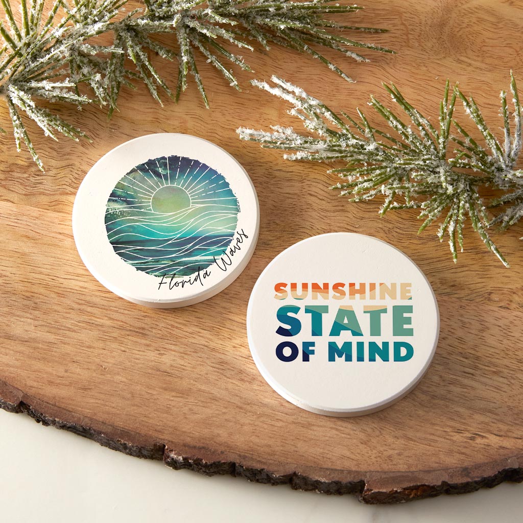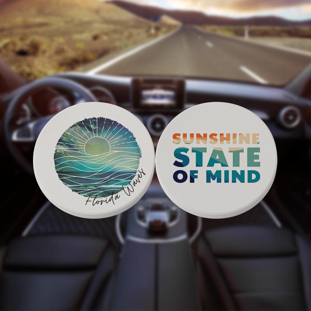 Florida Minimalistic Sayings | Absorbent Car Coasters | Set of 2 | Min 4