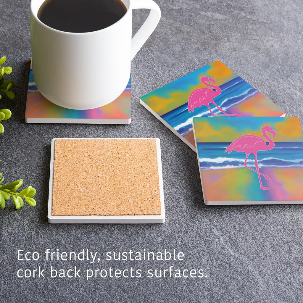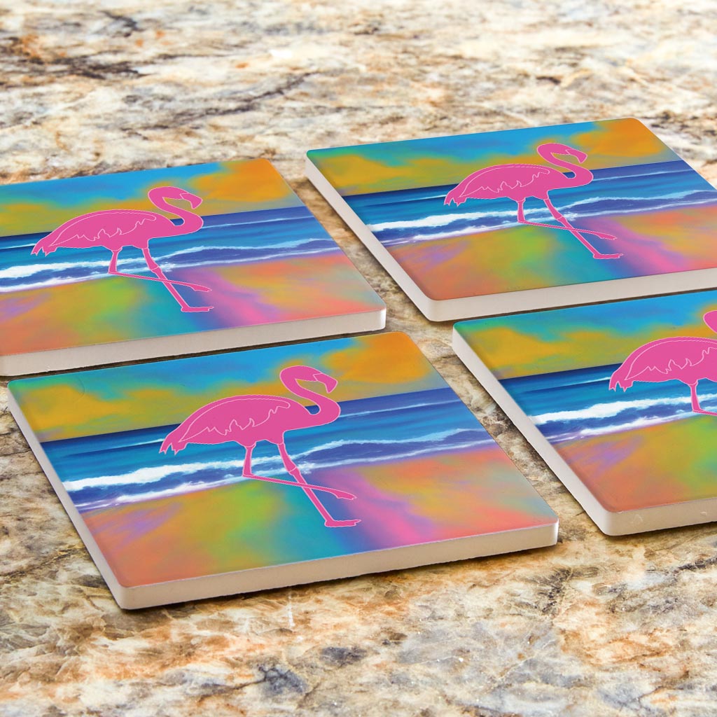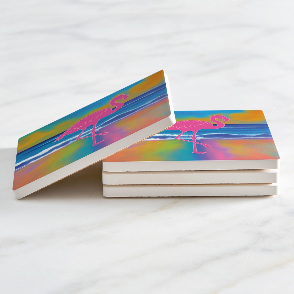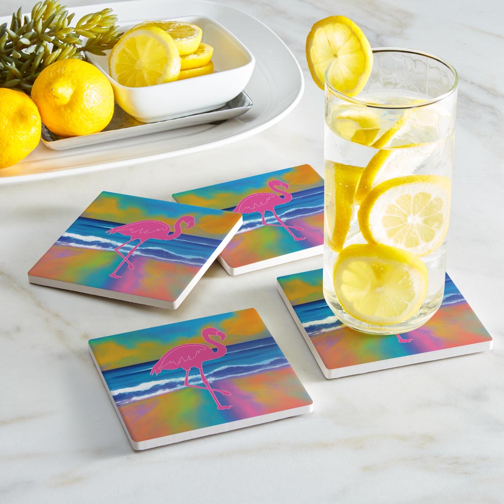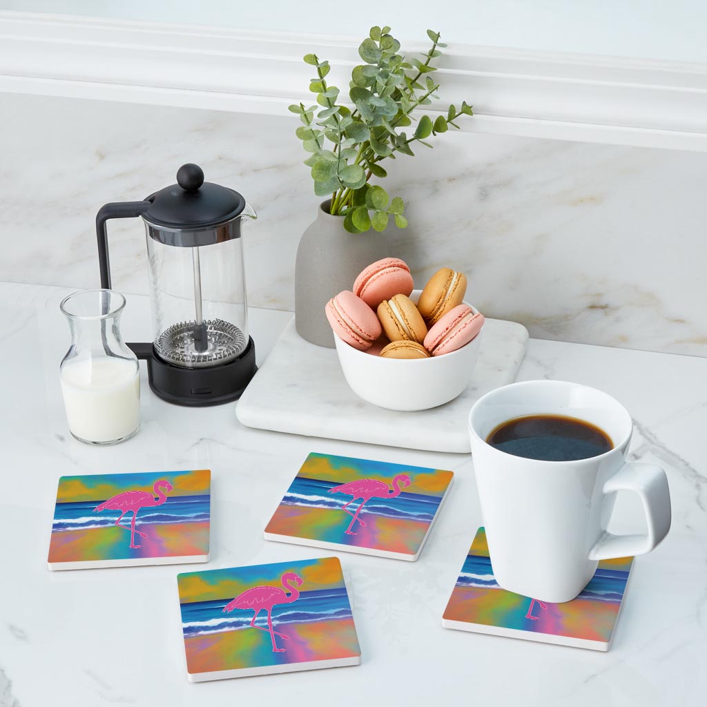 Florida Pink Flamingo Icon | Absorbent Coasters | Set of 4 | Min 2
