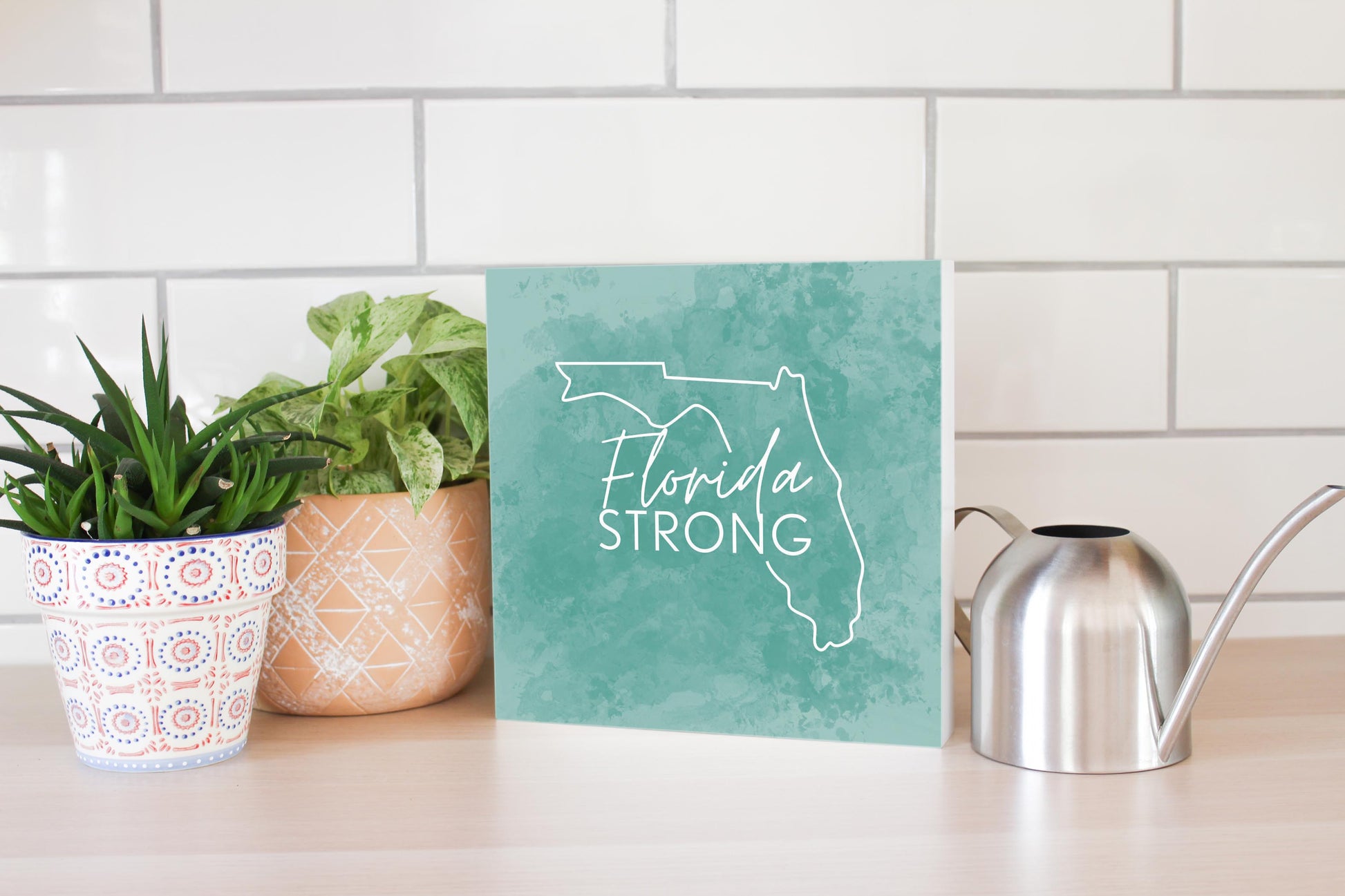 These wood block signs fit any setting! They require no hardware, and the hollow back design feely stands on its own or can be hung on the wall. Perfect for desks, mantels, counters, or shelves. The beautiful texture of the wood and vibrancy of ink are a great pairing. Our eco-friendly, water-based ink provides beautiful color and dimension, and all our wood blocks are made from upcycled compressed wood fiber. Printed and packaged in the USA. Express yourself!