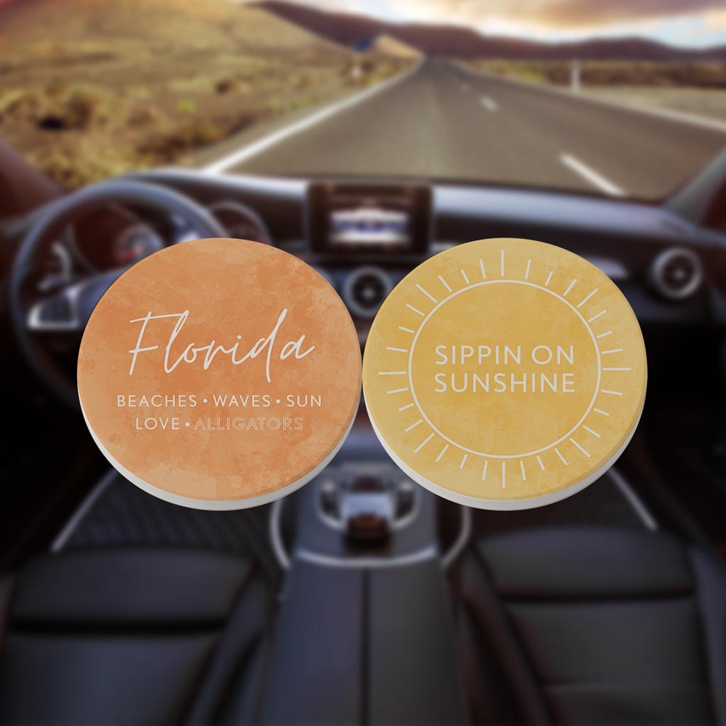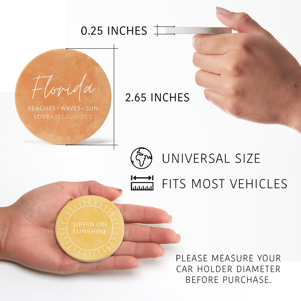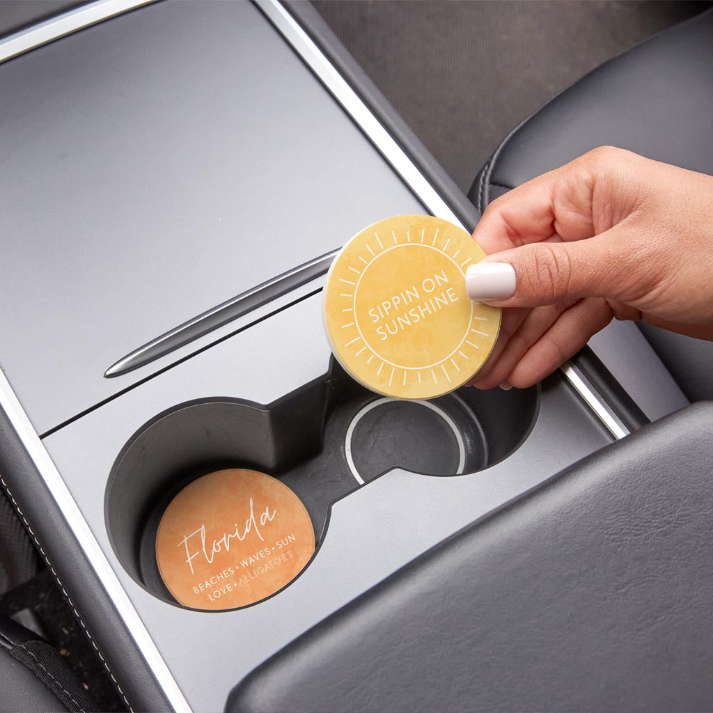 Florida Water Color Sayings | Absorbent Car Coasters | Set of 2 | Min 4