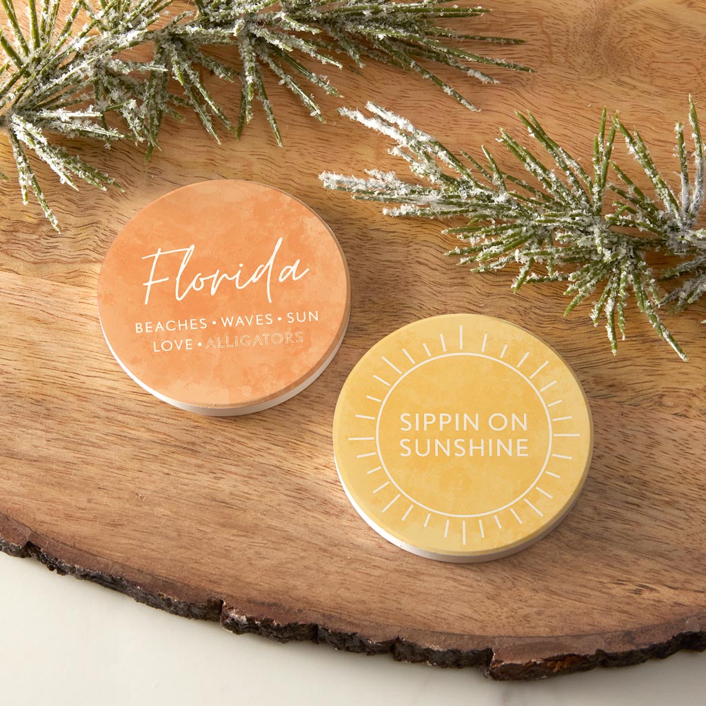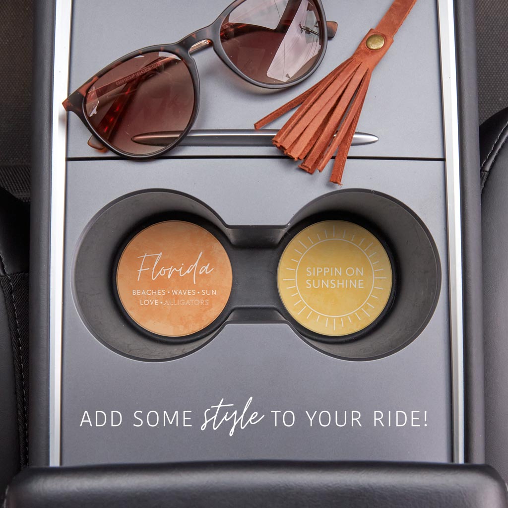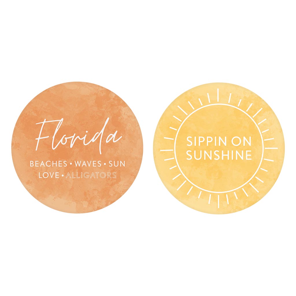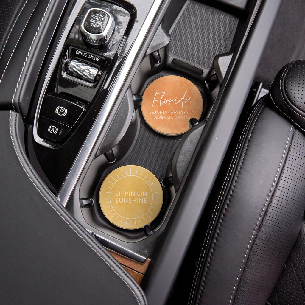 Florida Water Color Sayings | Absorbent Car Coasters | Set of 2 | Min 4
