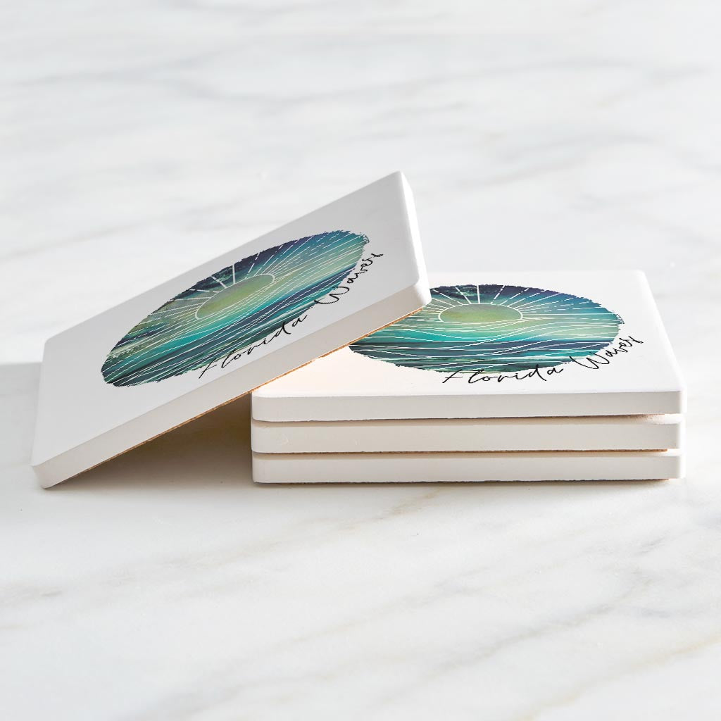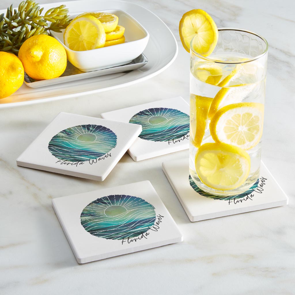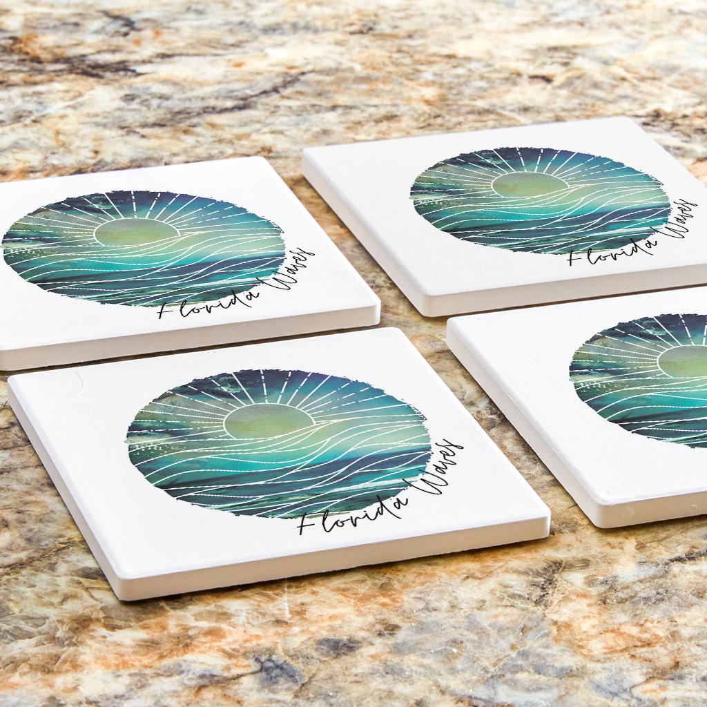 Florida Waves Blue Art| Absorbent Coasters | Set of 4 | Min 2