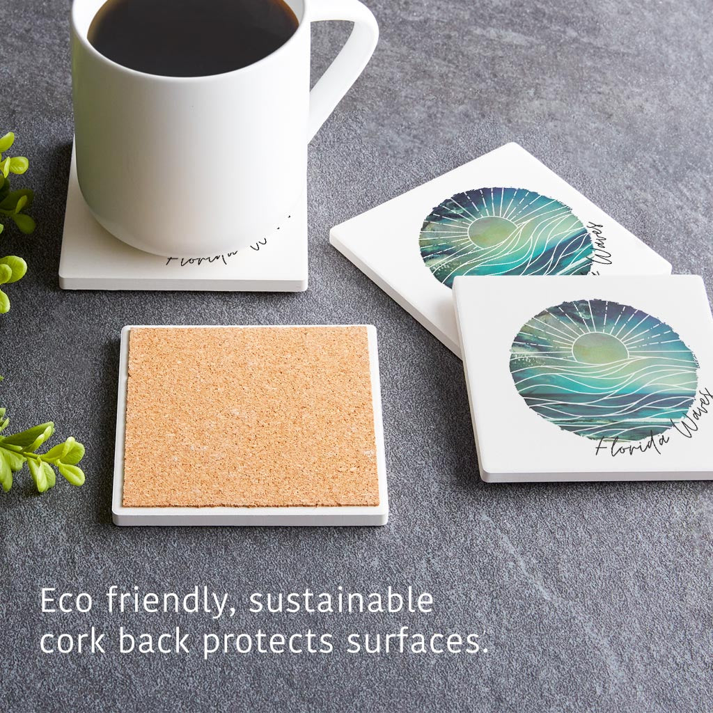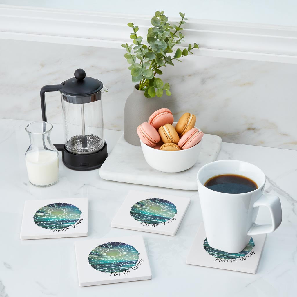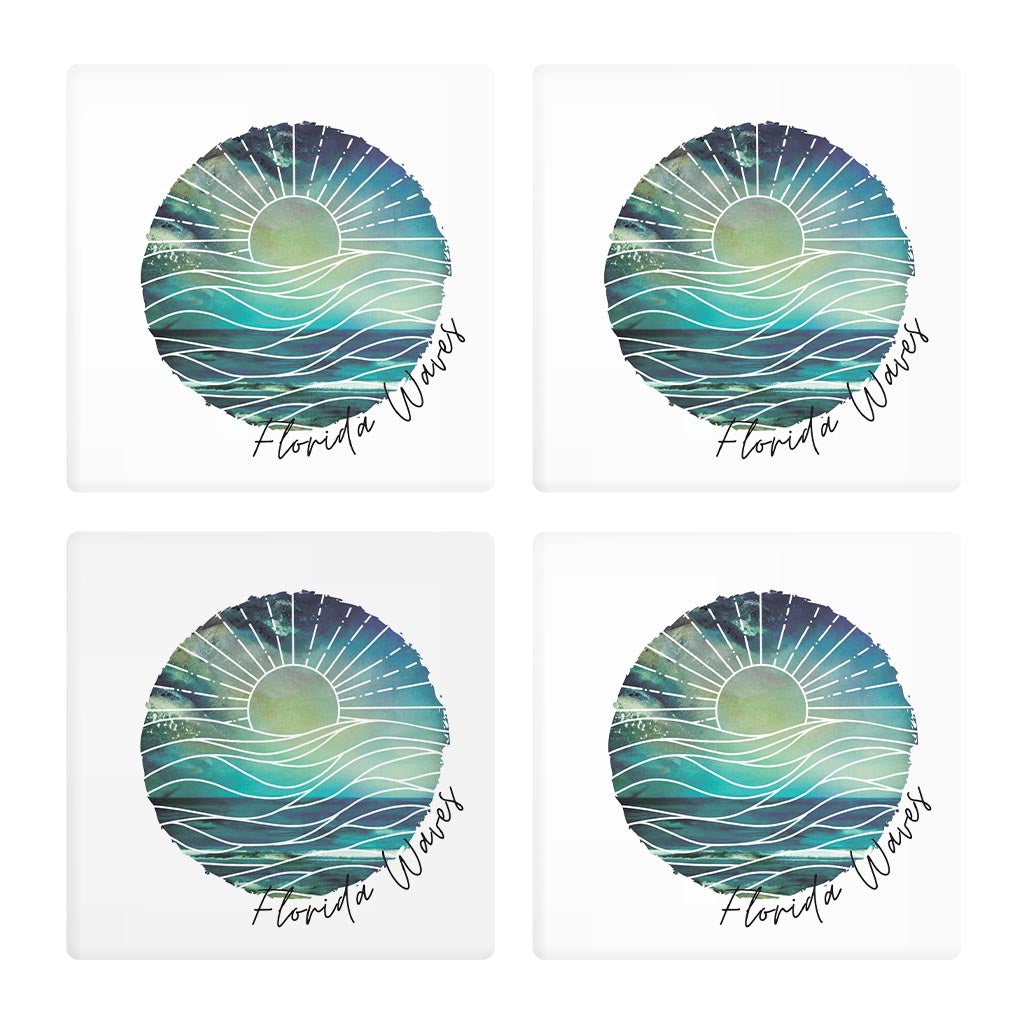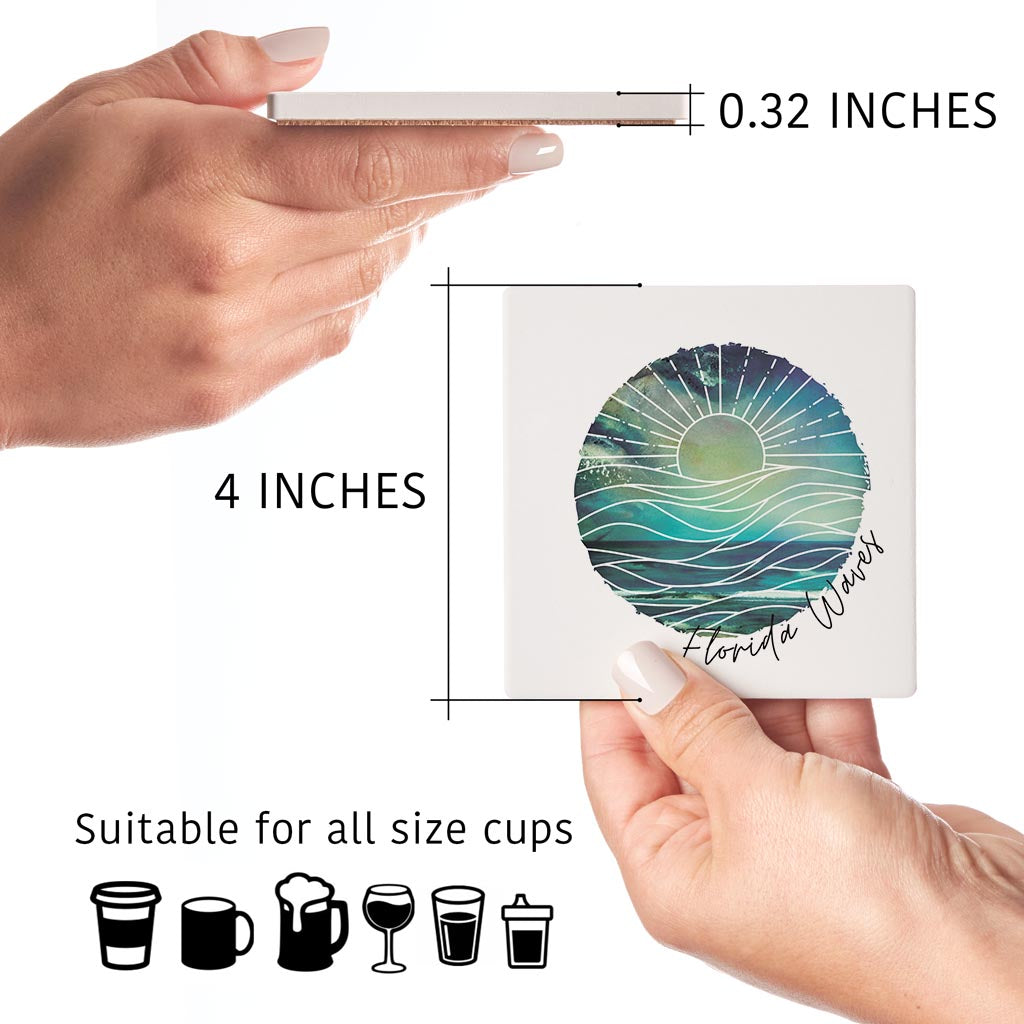 Florida Waves Blue Art| Absorbent Coasters | Set of 4 | Min 2