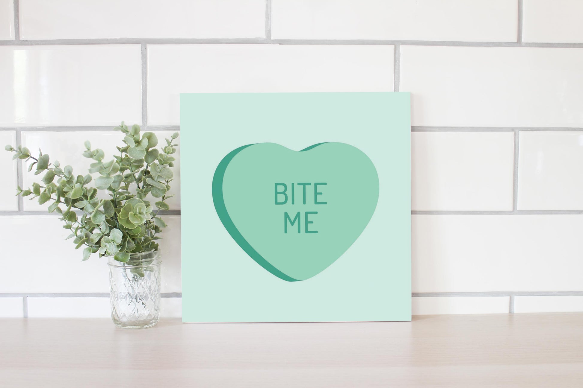 Funny Message Hearts Bite Me | Wood Sign | Eaches | Min 2