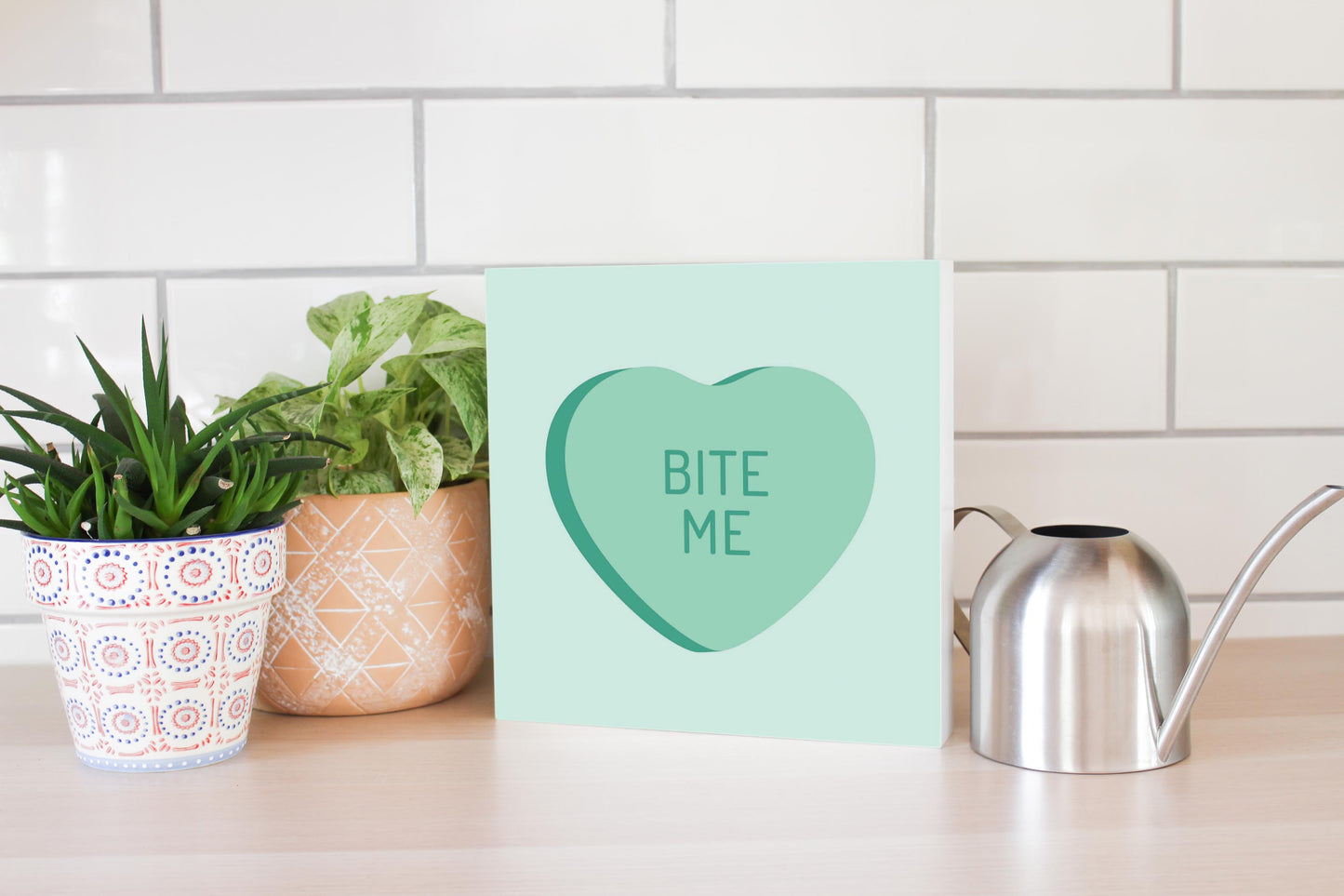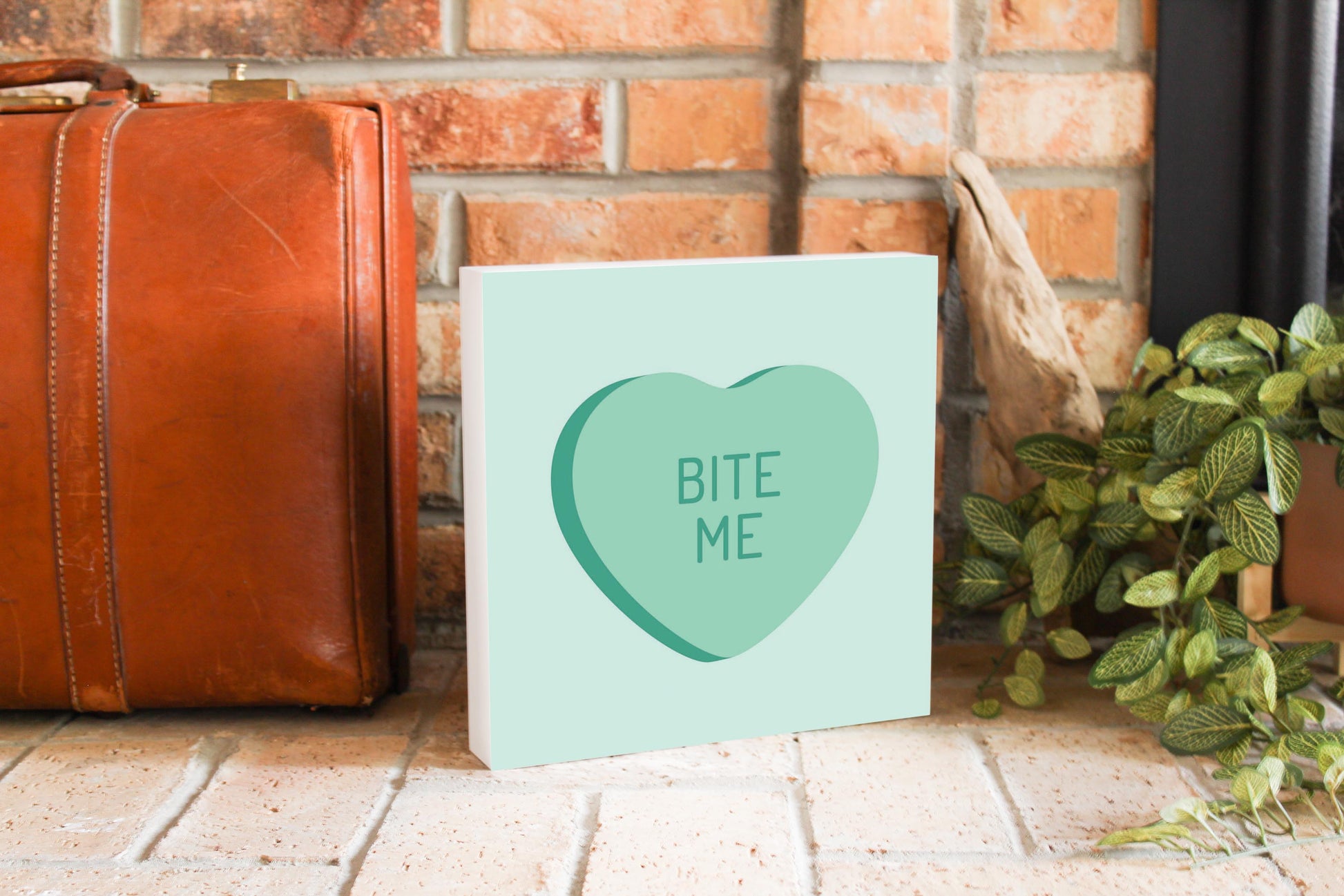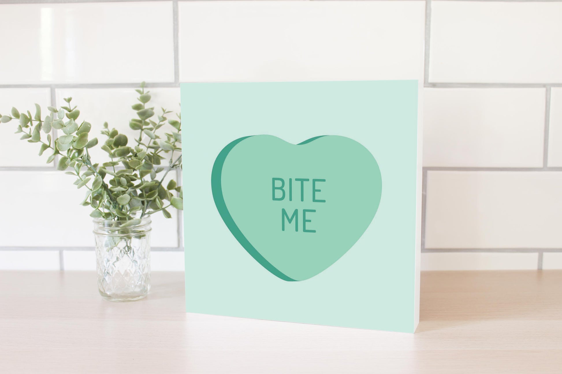 Funny Message Hearts Bite Me | Wood Block | Eaches | Min 2
