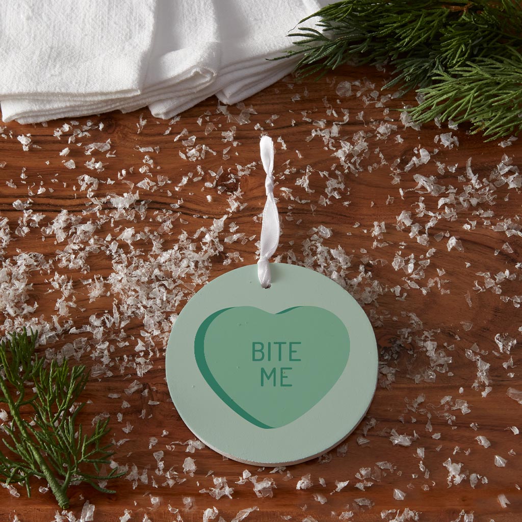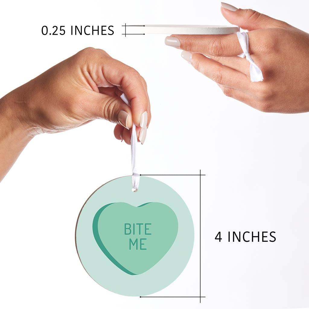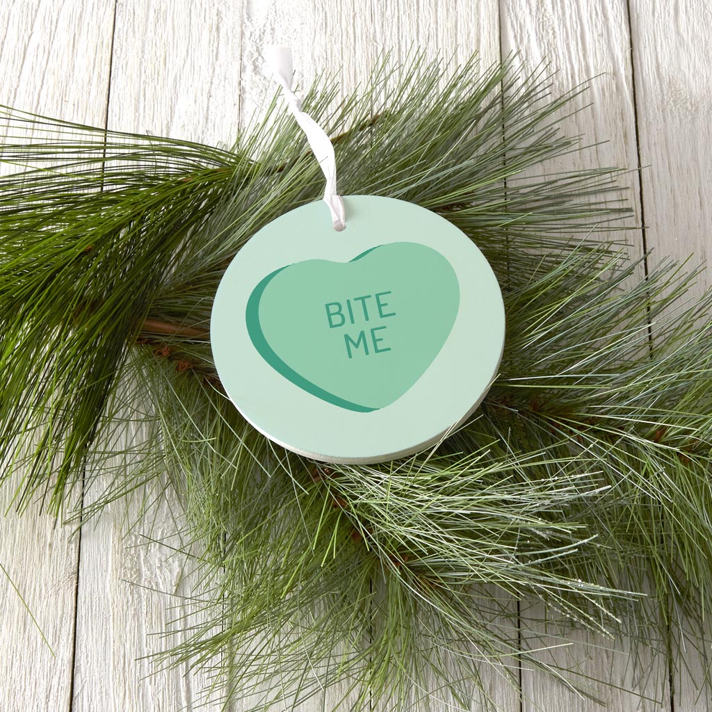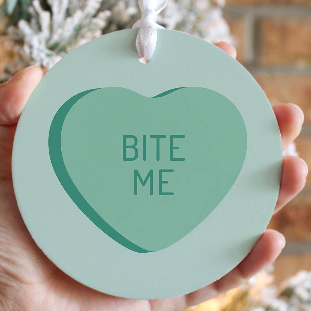 Funny Message Hearts Bite Me | Wood Ornament | Eaches | Min 6