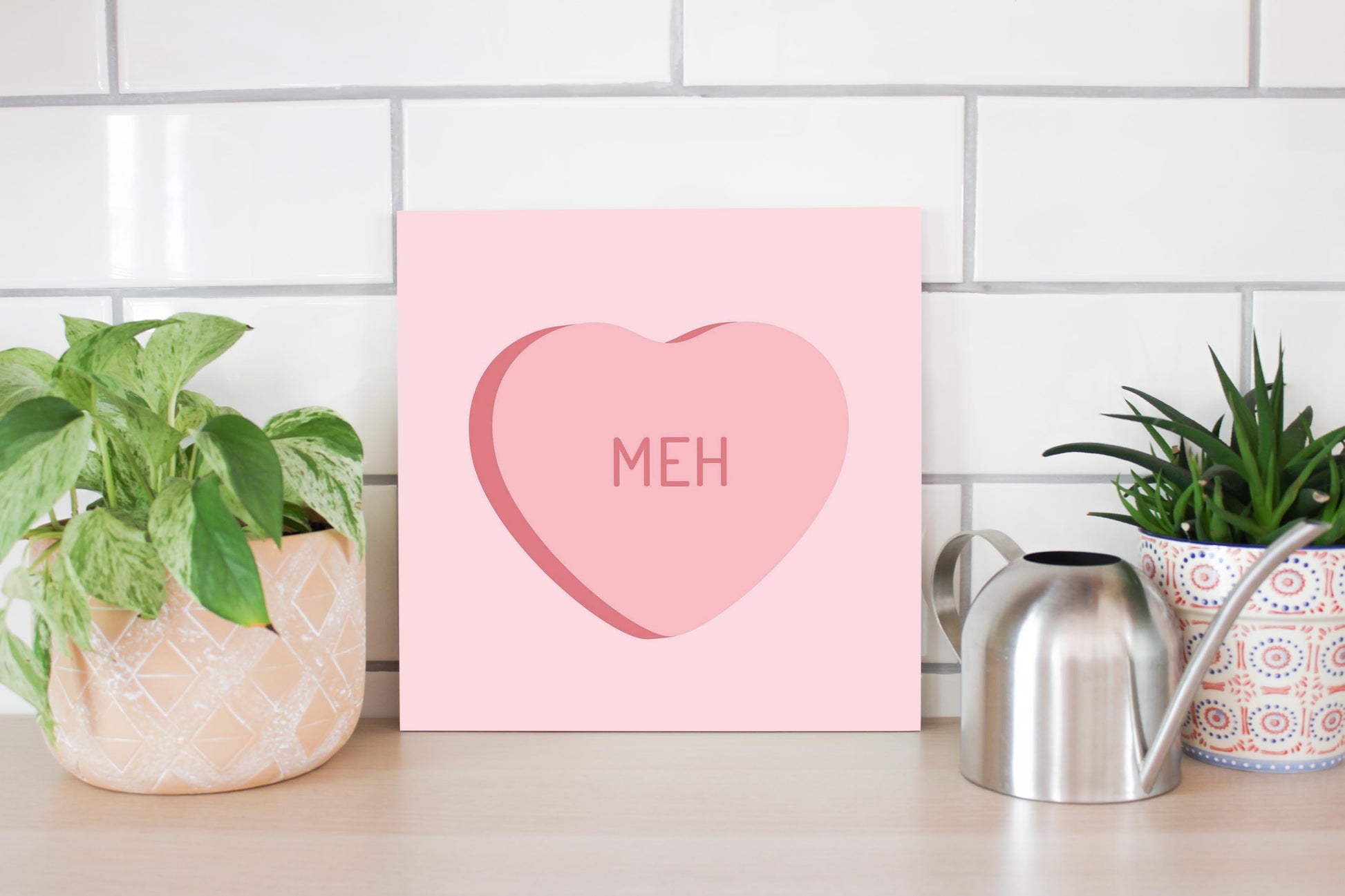 Funny Message Hearts Meh | Wood Sign | Eaches | Min 2