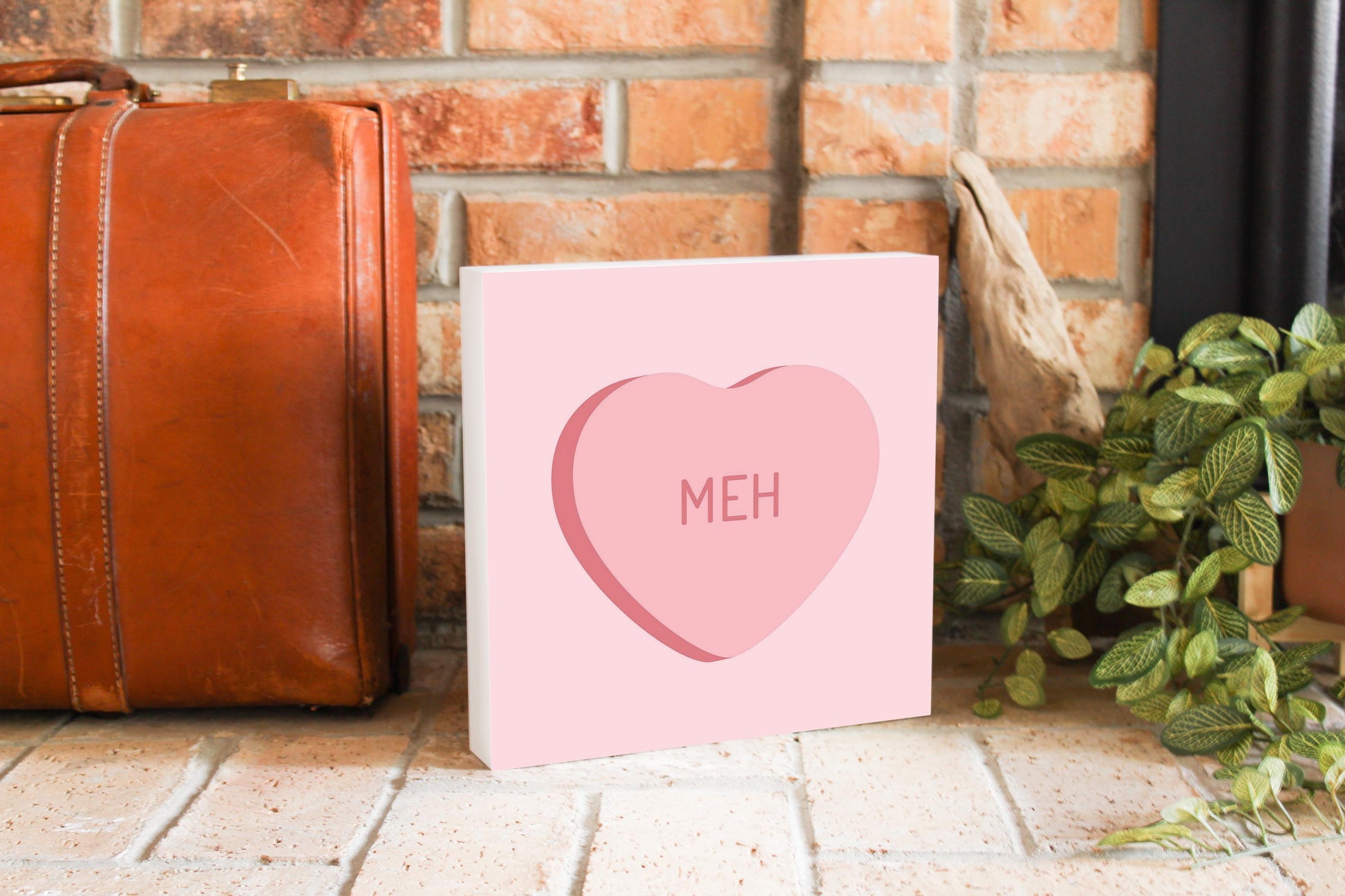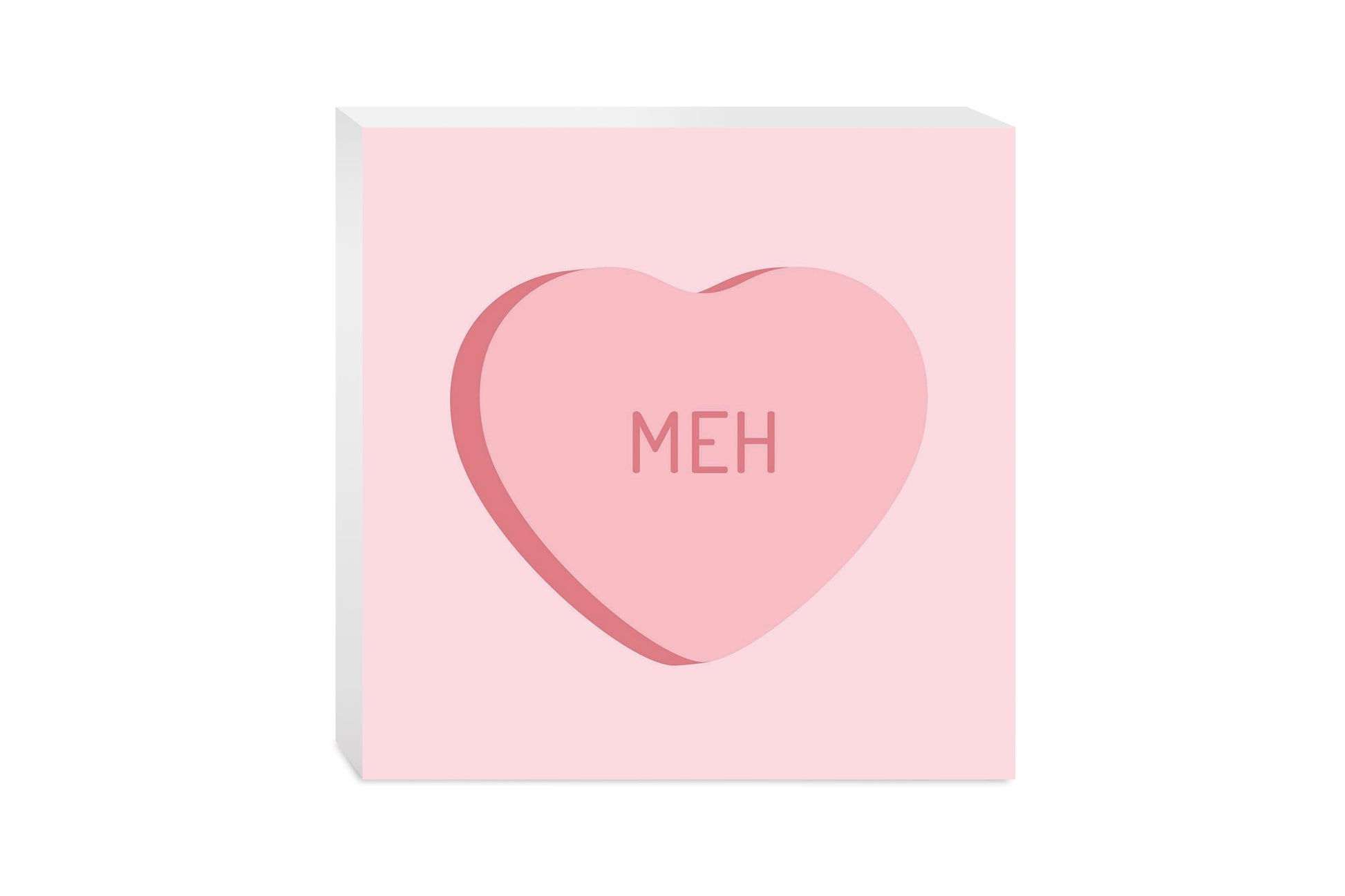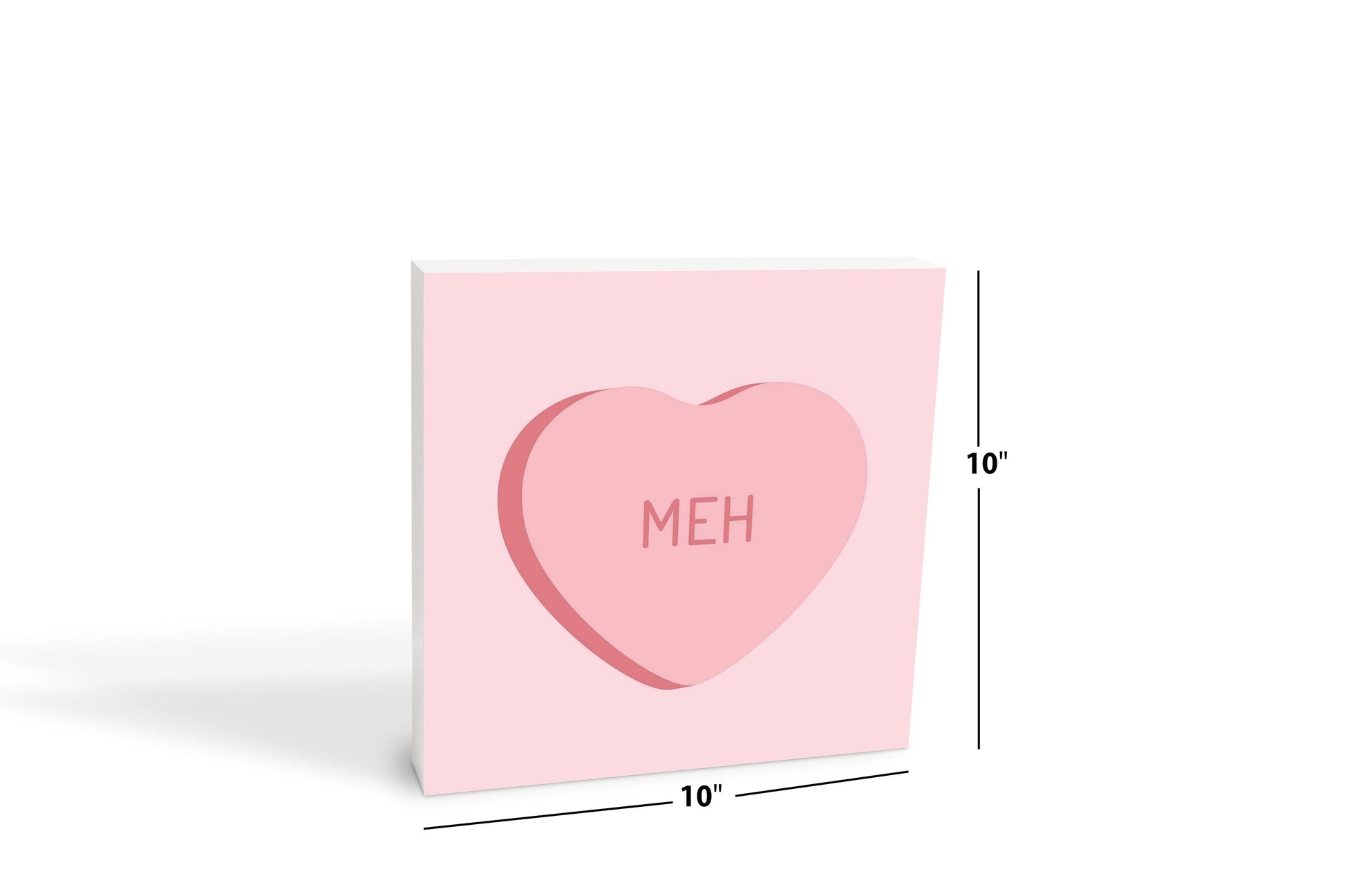 Funny Message Hearts Meh | Wood Block | Eaches | Min 2