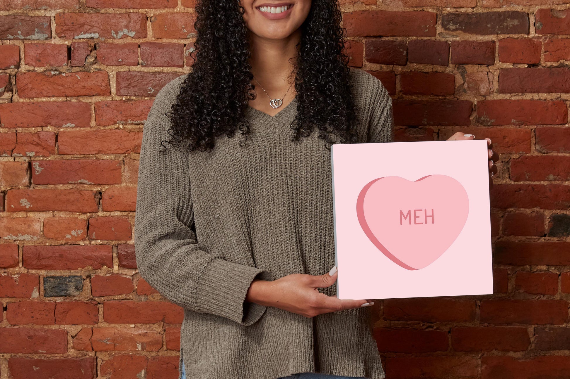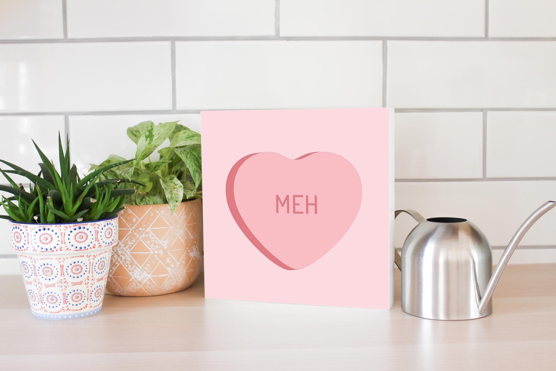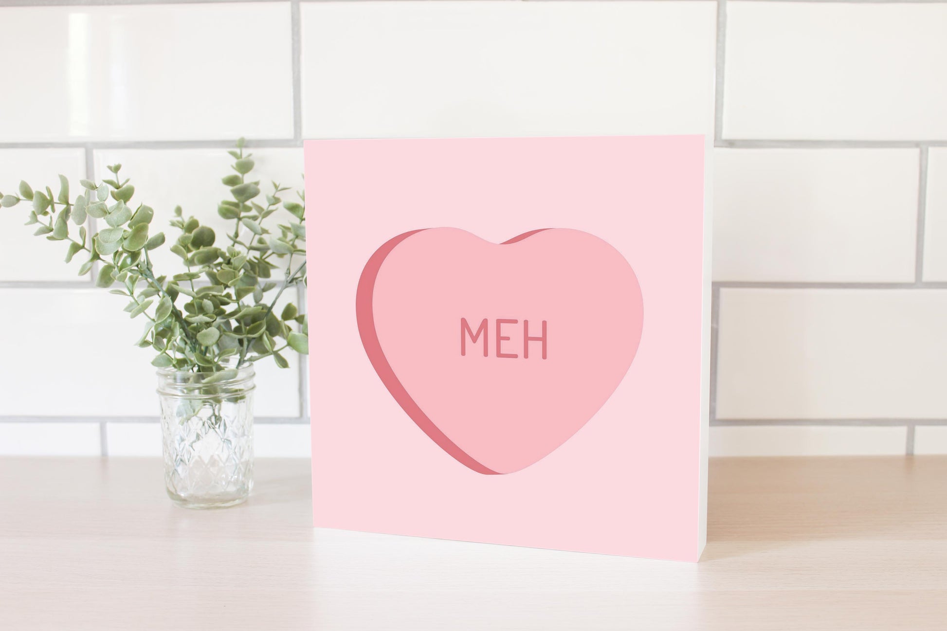 Funny Message Hearts Meh | Wood Block | Eaches | Min 2