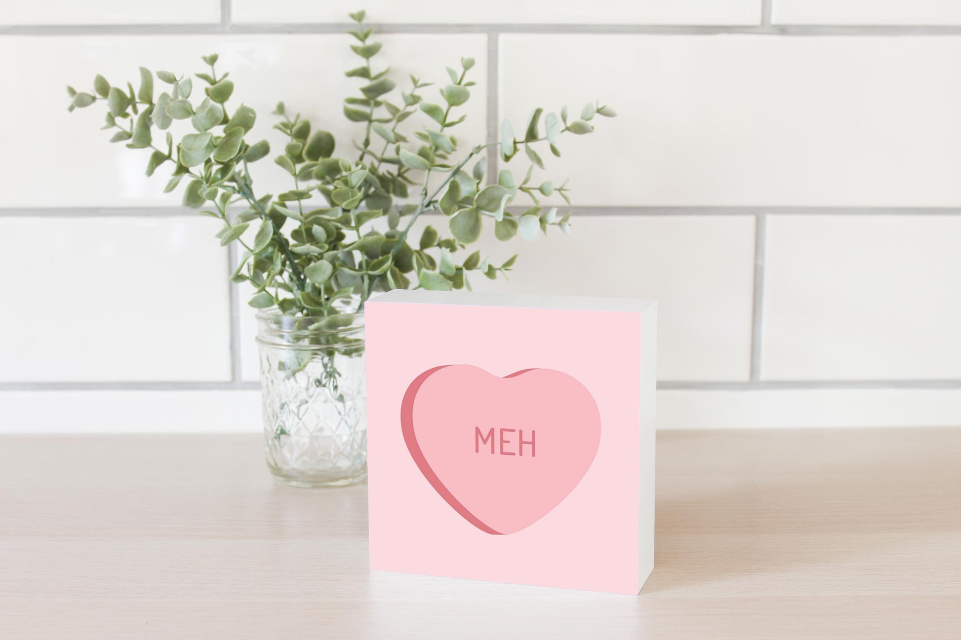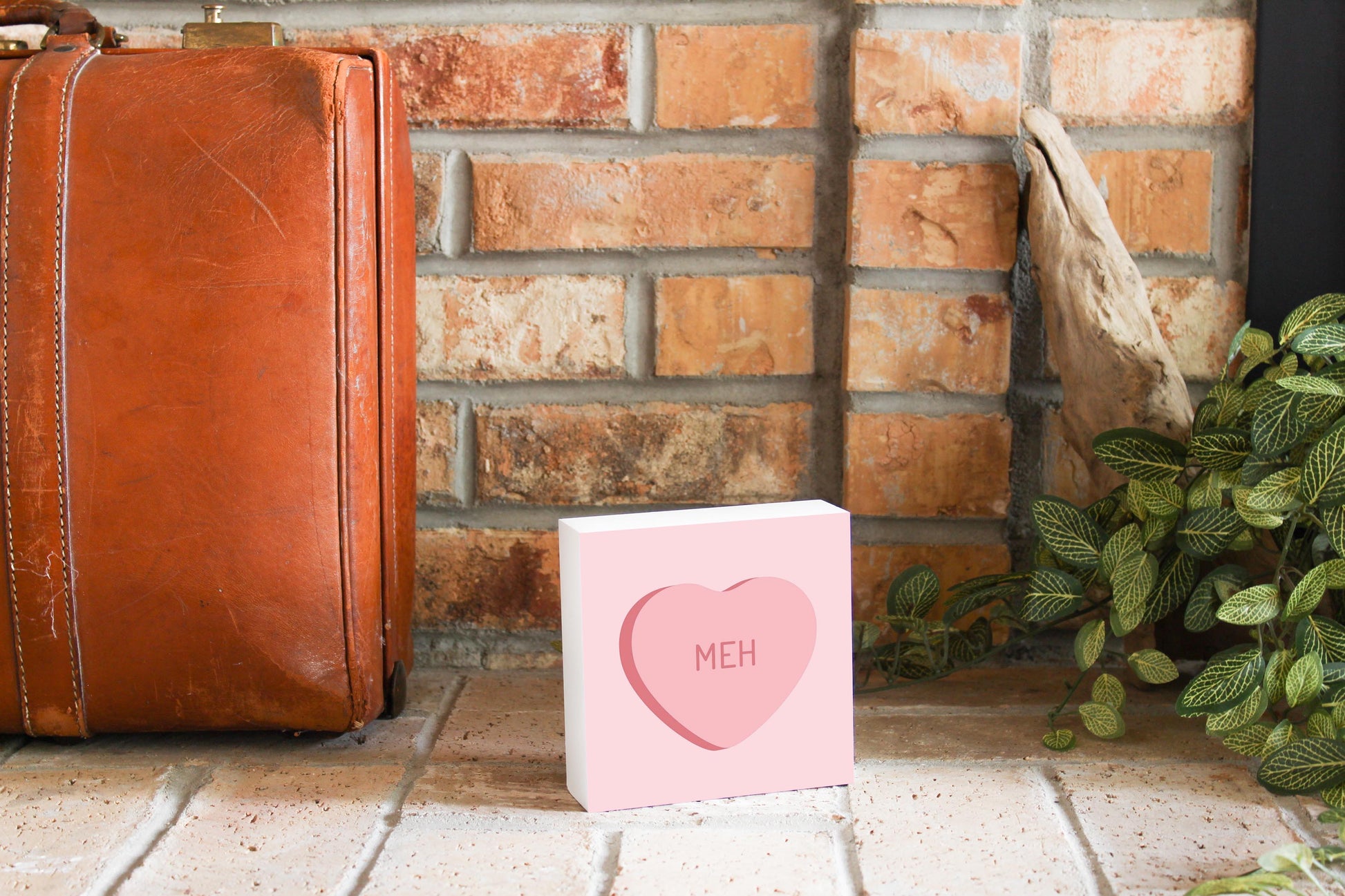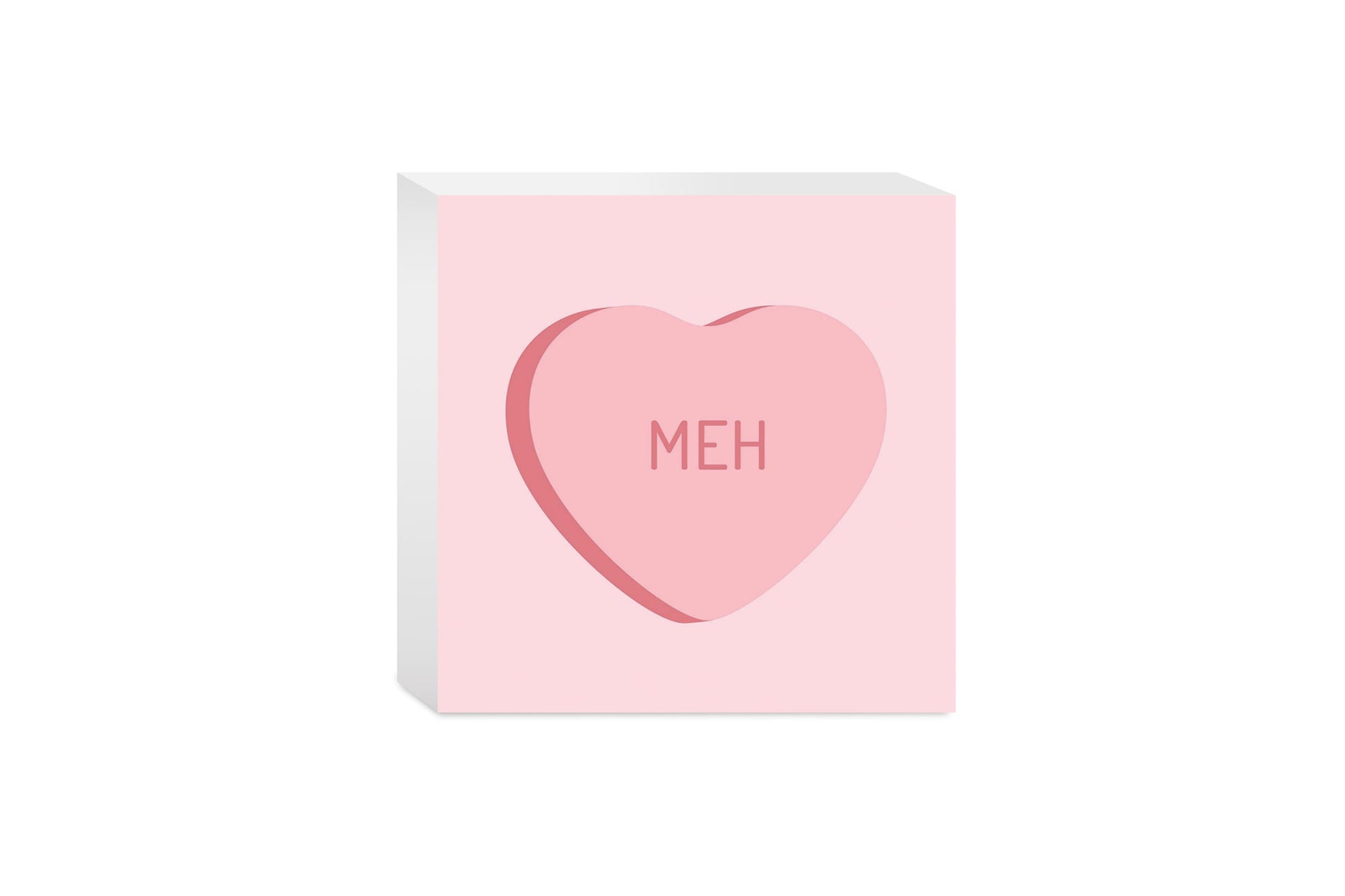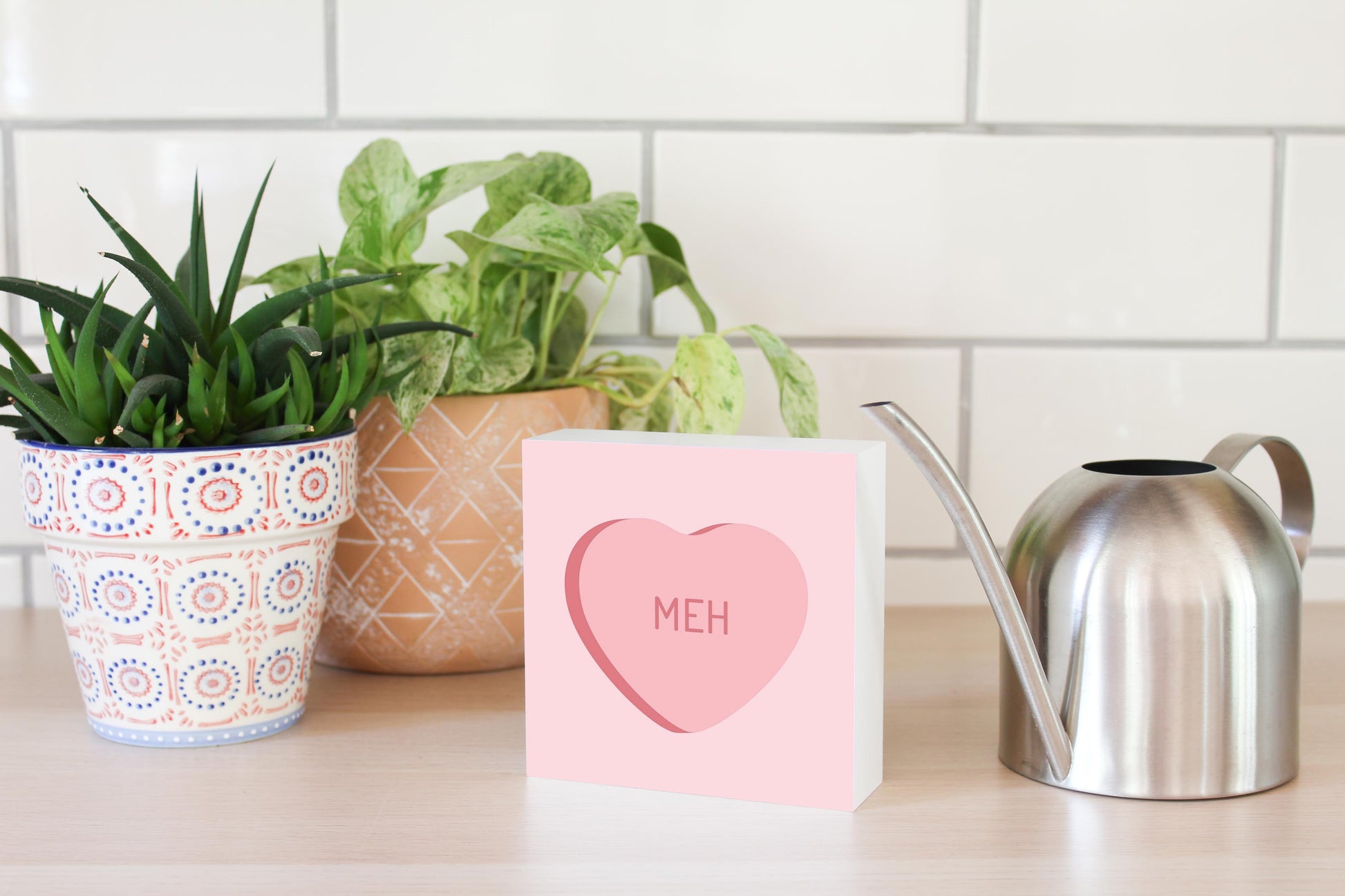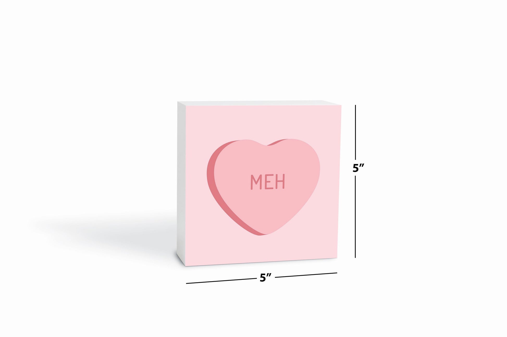 Funny Message Hearts Meh | Wood Block | Eaches | Min 4