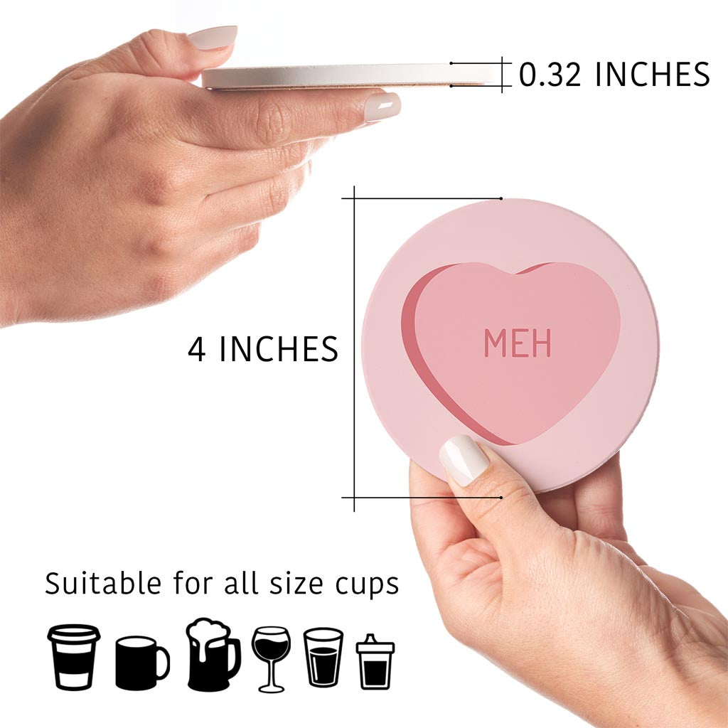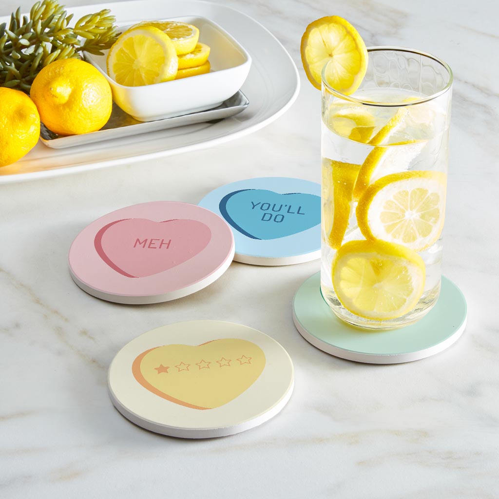 Funny Message Hearts With Sayings | Absorbent Coasters | Set of 4 | Min 2